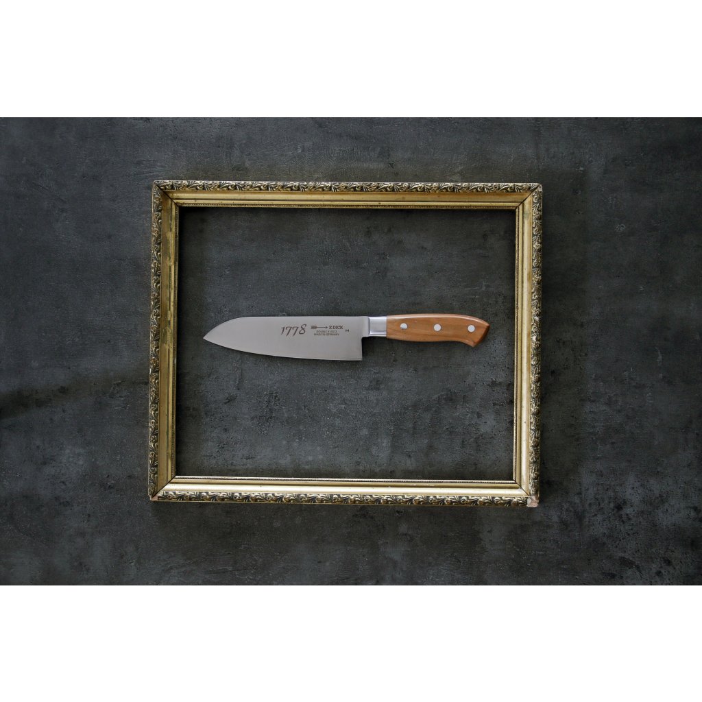 Kuta, limitowana seria jubileuszowa: rdzeń noży z tej wyjątkowej serii składa się z bardzo cienkich warstw wysokostopowej stali węglowej "Double X VG 12" o ekstremalnej twardości od 61? HRC. Wynikiem tego jest szczególnie wydajne cięcie i znaczne wydłużenie żywotności ostrza. Warstwowy rdzeń ze stali nierdzewnej jest przyjazny dla potraw. Wszystkie noże z serii 1778 są szlifowane i wykończone ręcznie, a rękojeść i ostrze są również wykonane przez specjalistów firmy Dick.