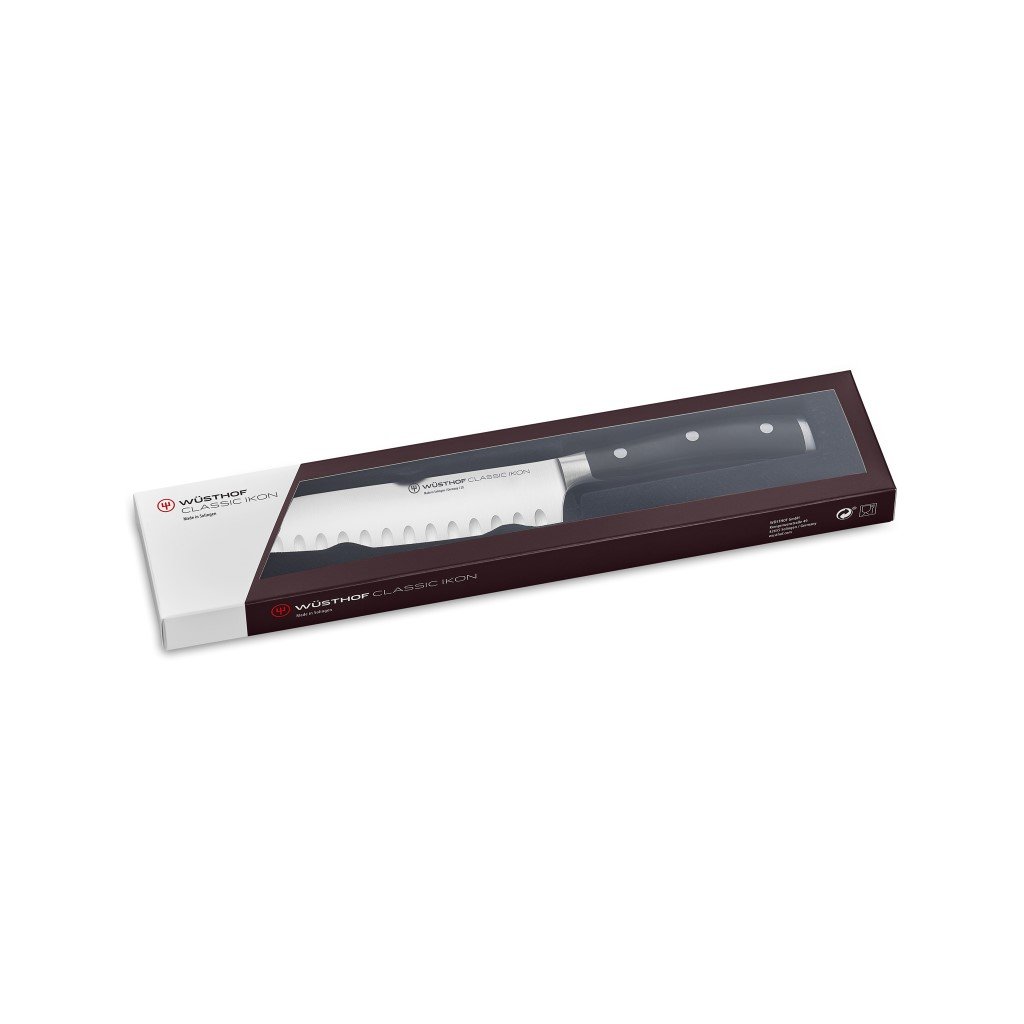 Nóż Santoku CLASSIC IKON 14 cm, z owalnymi rowkami, Wüsthof