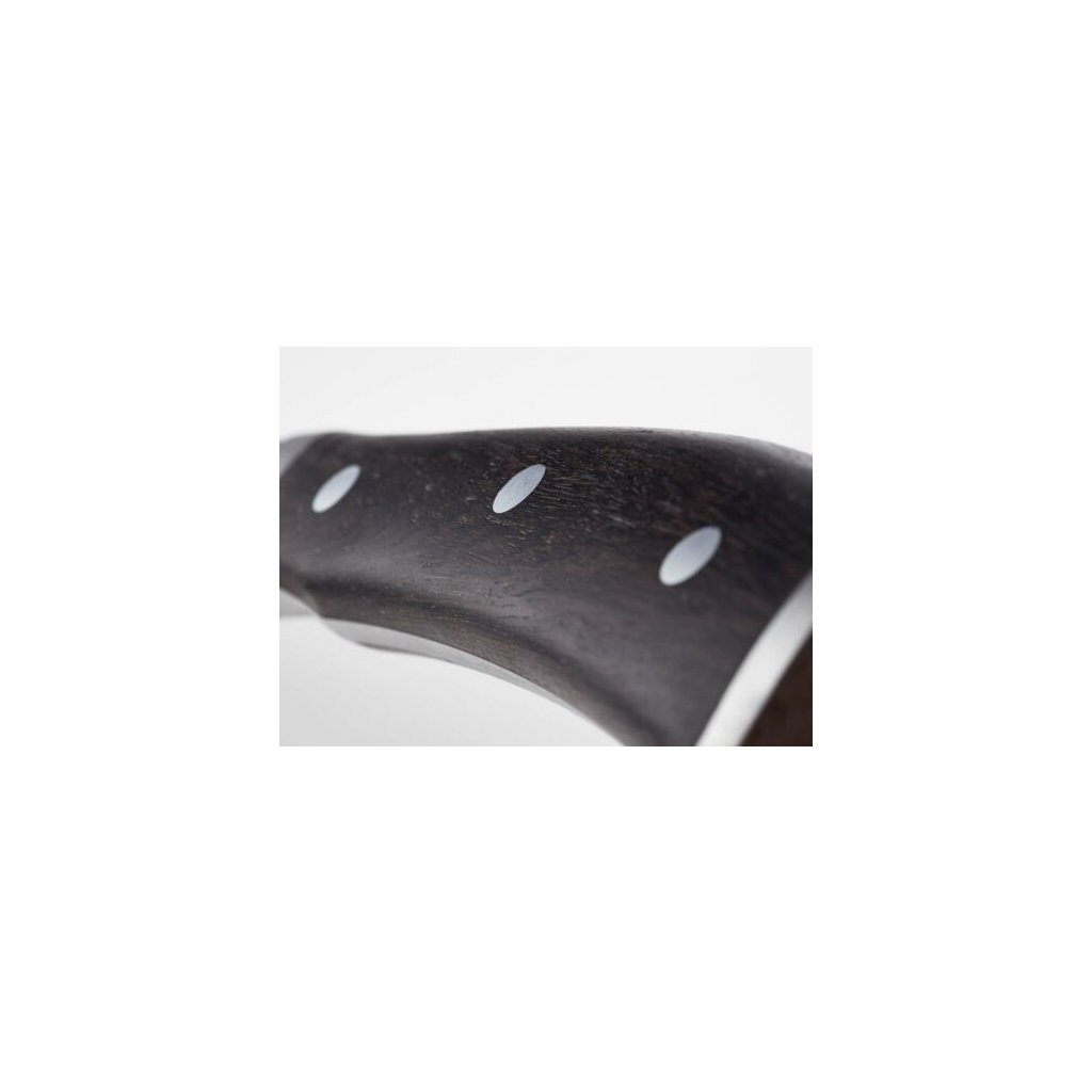 Ergonomiczna rękojeść wykonana jest z afrykańskiego drewna grenadill. Jest to bardzo trwałe, twarde drewno o gęstości większej niż heban. Ze względu na wysoką zawartość żywicy jest stosunkowo niewrażliwy na wilgoć, ale nie nadaje się do mycia w zmywarce. Drewniane rękojeści noży Ikon są trwale połączone z trzpieniem za pomocą trzech nitów. Perfekcyjne połączenie poszczególnych części zapobiega gromadzeniu się osadów i bakterii.