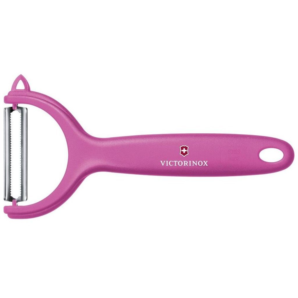 Obrotowa obieraczka ze stali nierdzewnej z mikroząbkami i podwójnym ostrzem nadaje się na przykład do pomidorów lub kiwi. Ergonomiczny uchwyt wykonany z różowego tworzywa sztucznego zapewnia wygodną pracę ze skrobaczką. Narzędzia marki Victorinox są niezastąpione w codziennych pracach kuchennych!