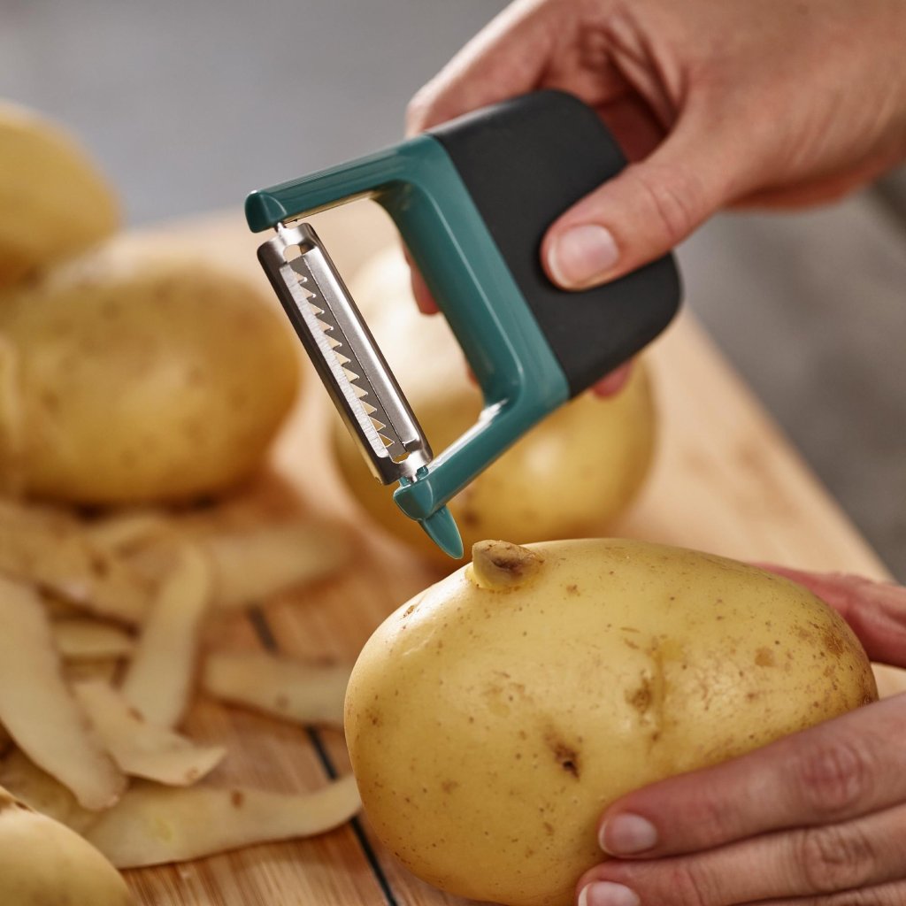 - Zintegrowany obierak do ziemniaków umożliwia łatwe i szybkie usuwanie niedoskonałości bez potrzeby dodatkowego narzędzia.