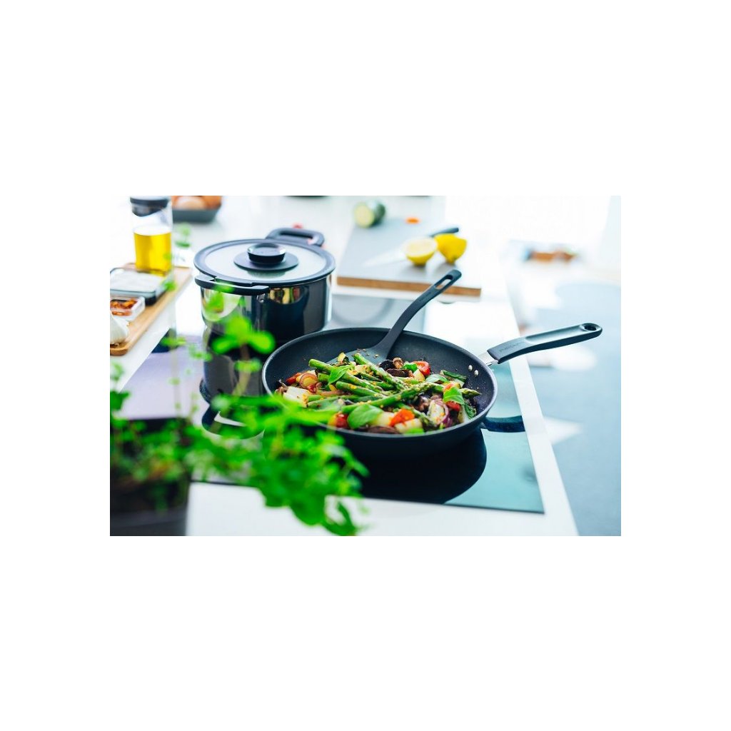 Patelnia Functional Form o średnicy 26 cm jest przeznaczona do łatwego gotowania na co dzień. Patelnie z serii Functional Form zostały nagrodzone Red Dot Design Award. Wykonana jest z aluminium, z dwuwarstwową powierzchnią nieprzywierającą wykonaną z trwałego materiału Hardtec™. Powierzchnia Hardtec™ nie zawiera PFOA i zapewnia wysoką nieprzywieralność. Zewnętrzna powierzchnia patelni jest gładka i dzięki temu zapewnia maksymalną ochronę płyty grzewczej przed zarysowaniami. Nadaje się do wszystkich rodzajów płyt grzewczych. Bakelitowa rączka pozostaje przyjemnie chłodna podczas smażenia, zapewniając pewny chwyt. Nadaje się do mycia w zmywarce.