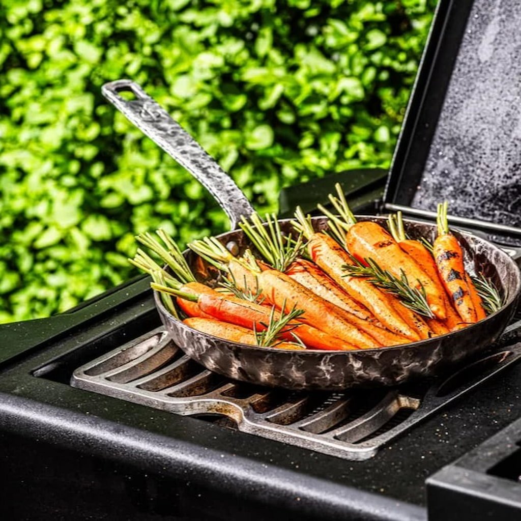 - Jeśli lubisz gotować na świeżym powietrzu, na przykład na grillu lub w piekarniku, ta patelnia nie zawiedzie Cię nawet podczas prawdziwego grillowania na świeżym powietrzu.