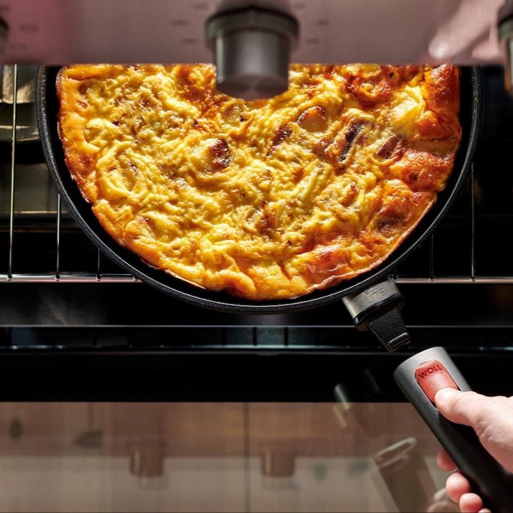 - patelnia z nieprzywierającą powłoką Woll ECO LITE IND QXR o średnicy 20 cm idealnie nadaje się do smażenia mniejszych ilości składników, np. cebuli, warzyw czy mięsa