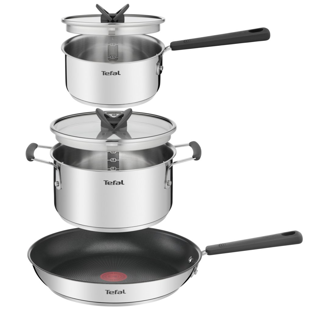 Patelnie i garnki OPTI'SPACE G737S544, zestaw 5 sztuk, srebrne, stal nierdzewna, Tefal