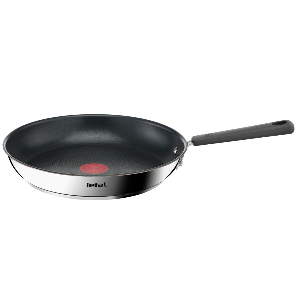 - patelnia ma trwałą (wytrzymuje do 2x dłużej niż standardowa Tefal) nieprzywierającą tytanową powierzchnię wolną od PFOA, kadmu i ołowiu do smażenia i podsmażania z niewielką ilością tłuszczu lub bez niego