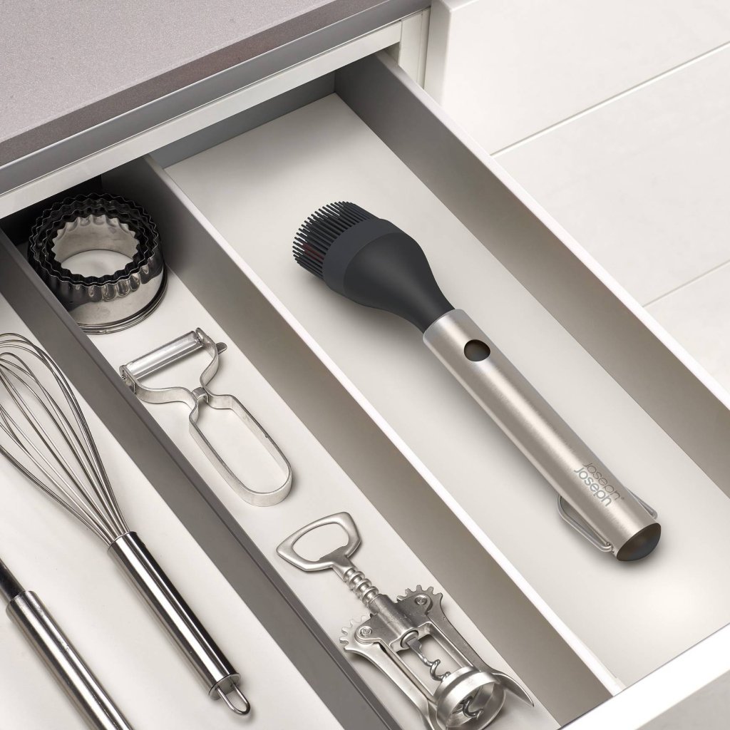 - Silikonowa szczotka do grilla Joseph Joseph GRILLOUT to idealny pomocnik do pokrywania mięsa, ryb i warzyw marynatami i sosami podczas grillowania.