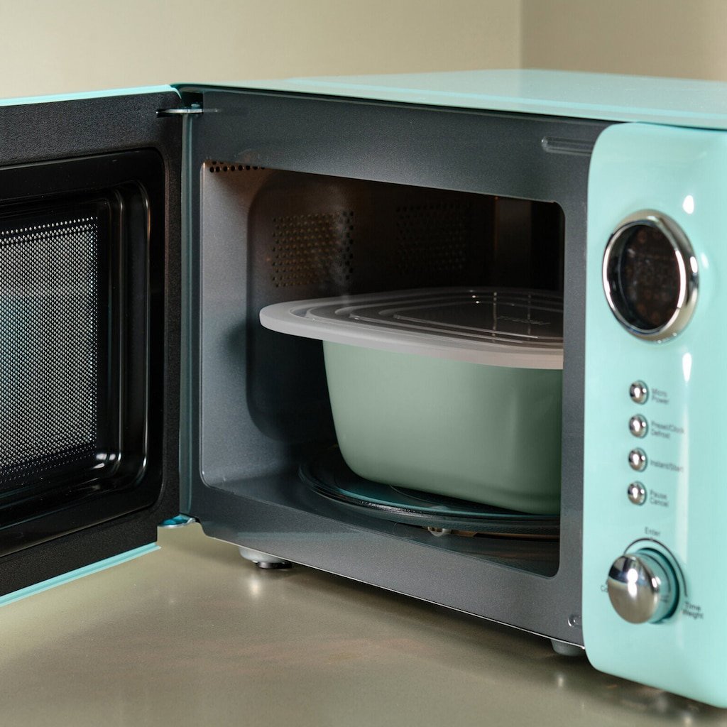 - miska może być używana w kuchence mikrofalowej bez pokrywki, dzięki czemu żywność można podgrzewać bezpośrednio w tym samym pojemniku, w którym jest przechowywana