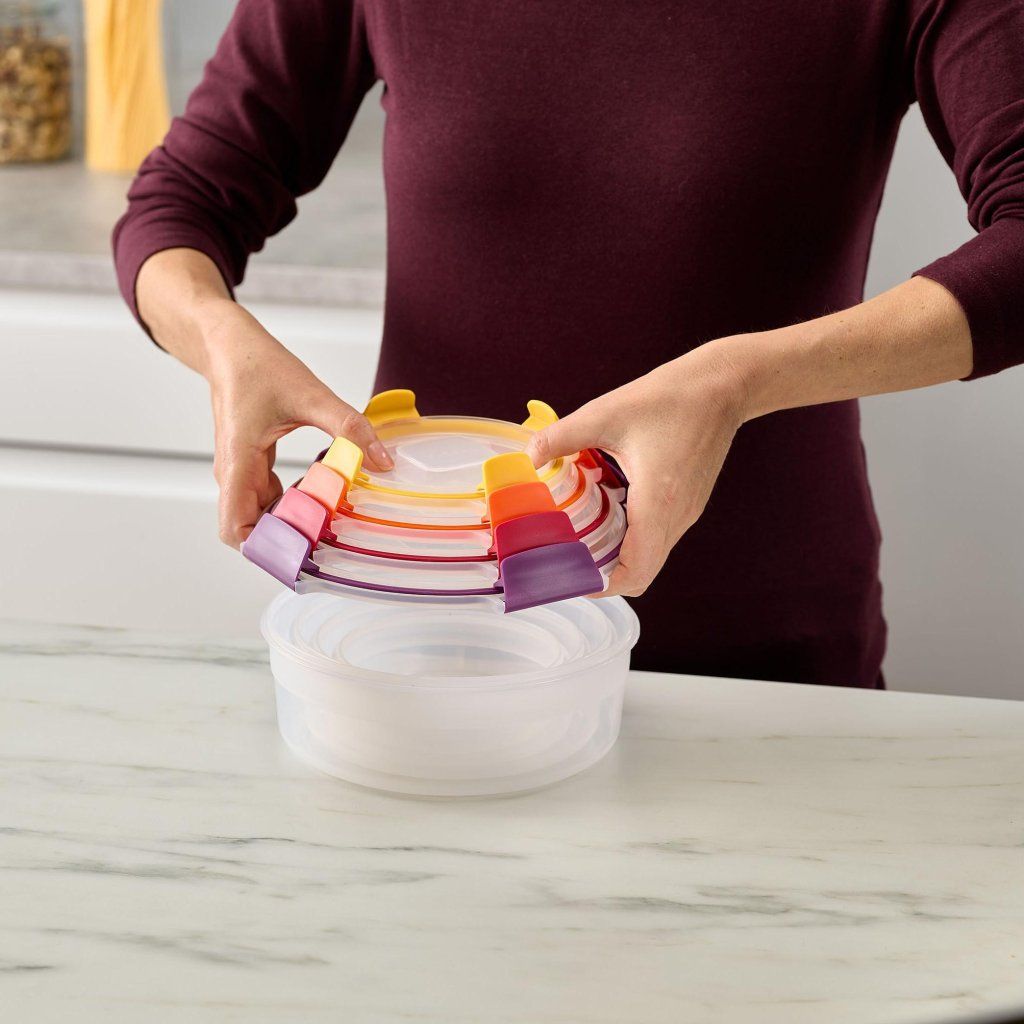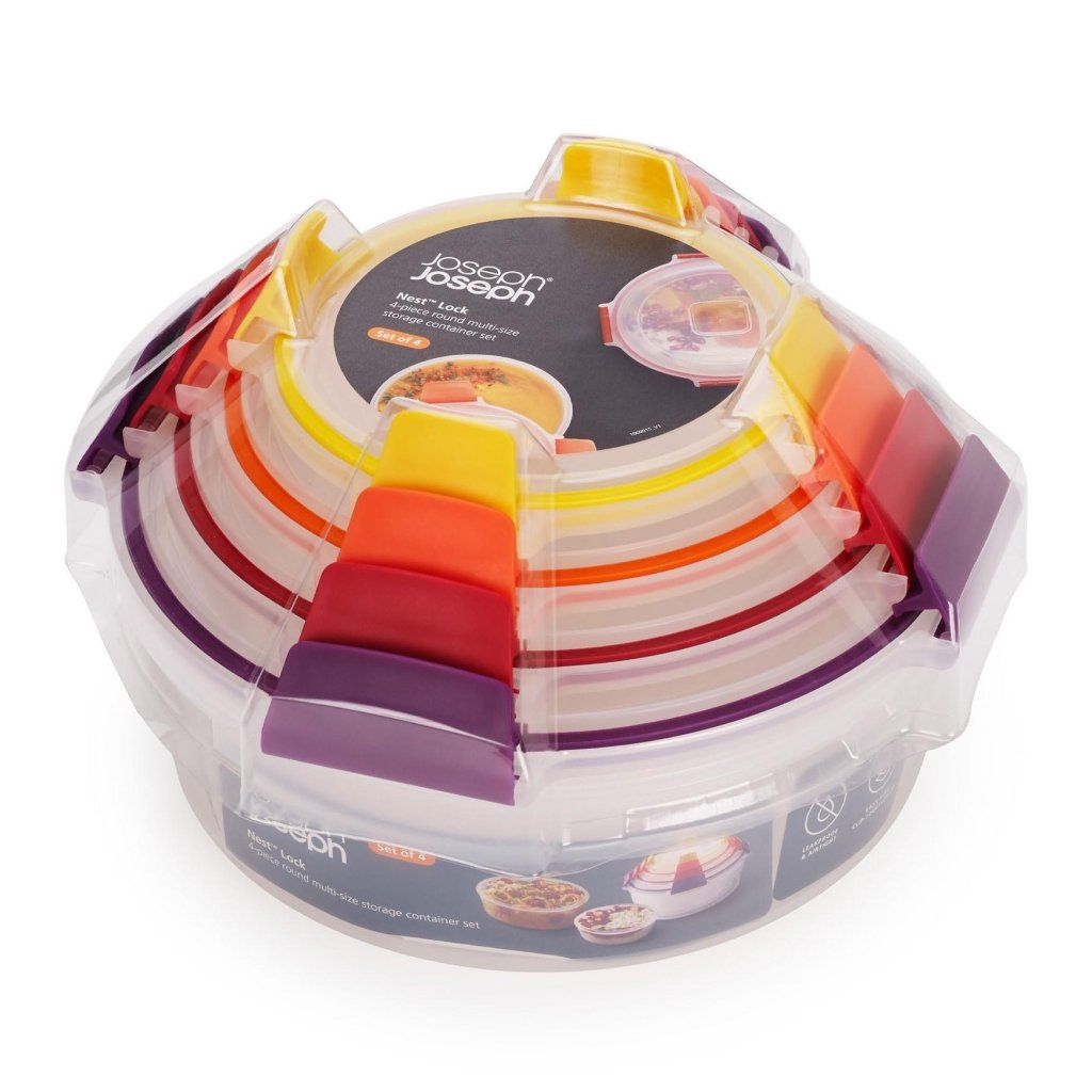 - Zestaw pojemników na żywność Joseph Joseph NEST LOCK w wielokolorowym, okrągłym wydaniu oferuje praktyczne i przejrzyste rozwiązanie do przechowywania żywności w domu, w pracy i w podróży.
