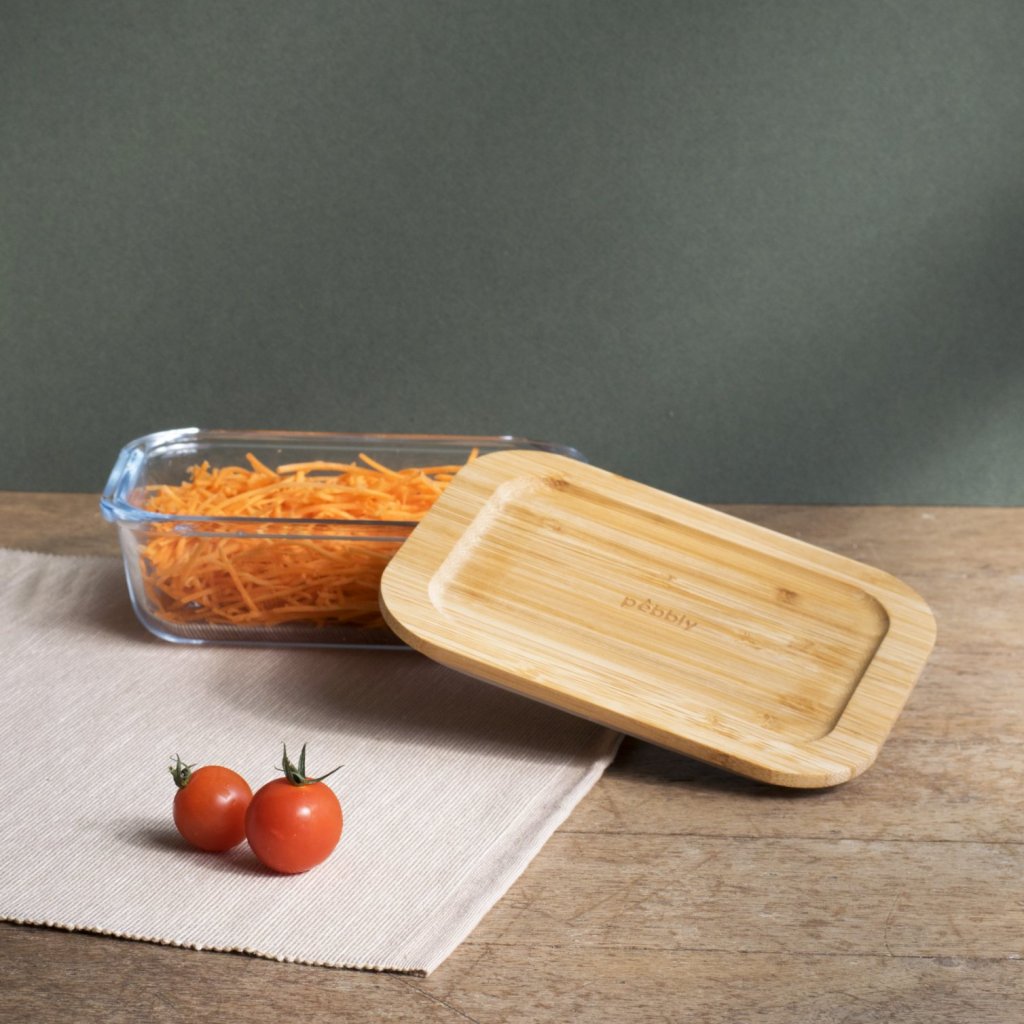 - szklane pudełko z bambusową pokrywką do przechowywania różnych produktów spożywczych