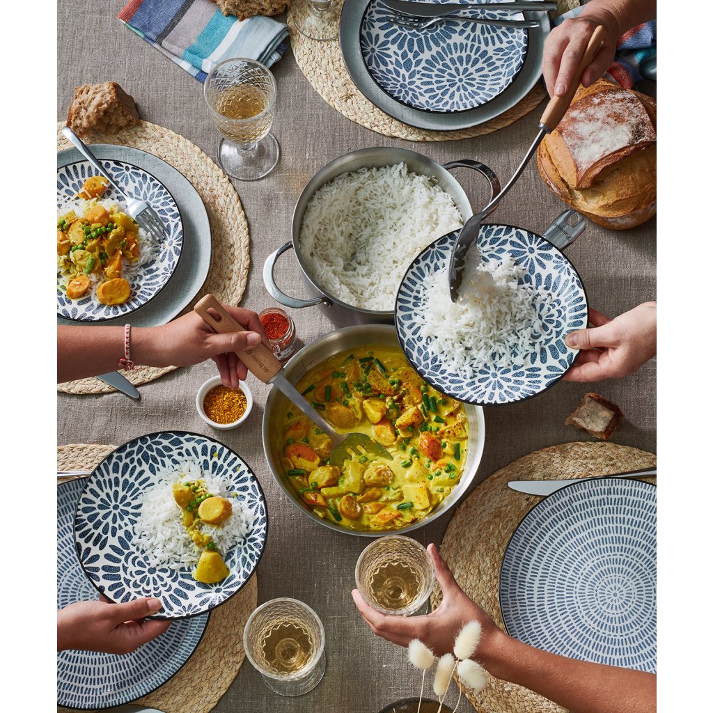 Patelnia prosta z kolekcji Alchimy producenta de Buyer spełnia wymagania profesjonalnych i amatorskich kucharzy do codziennego gotowania. Równomierny rozkład temperatury gwarantuje trójwarstwowa kompozycja korpusu naczynia i zapewnia całkowitą kontrolę nad nawet najbardziej skomplikowanym gotowaniem. Garnki Alchimy są odpowiednie do zdrowego gotowania. Jest trwały, łatwy do czyszczenia, a jego konstrukcja pomaga zmniejszyć zużycie energii.