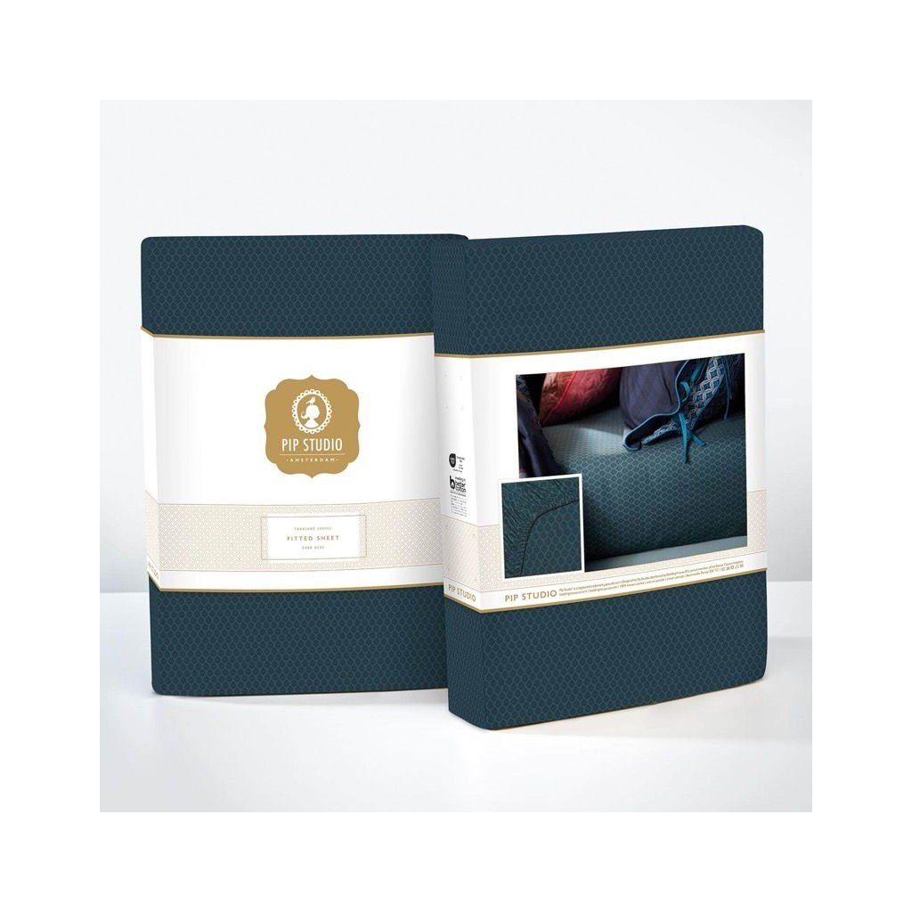 Prześcieradło pojedyncze z gumką TYSIĄC LEAVES 90 x 200 cm, ciemny niebieski, bawełna perkalowa, Pip Stu