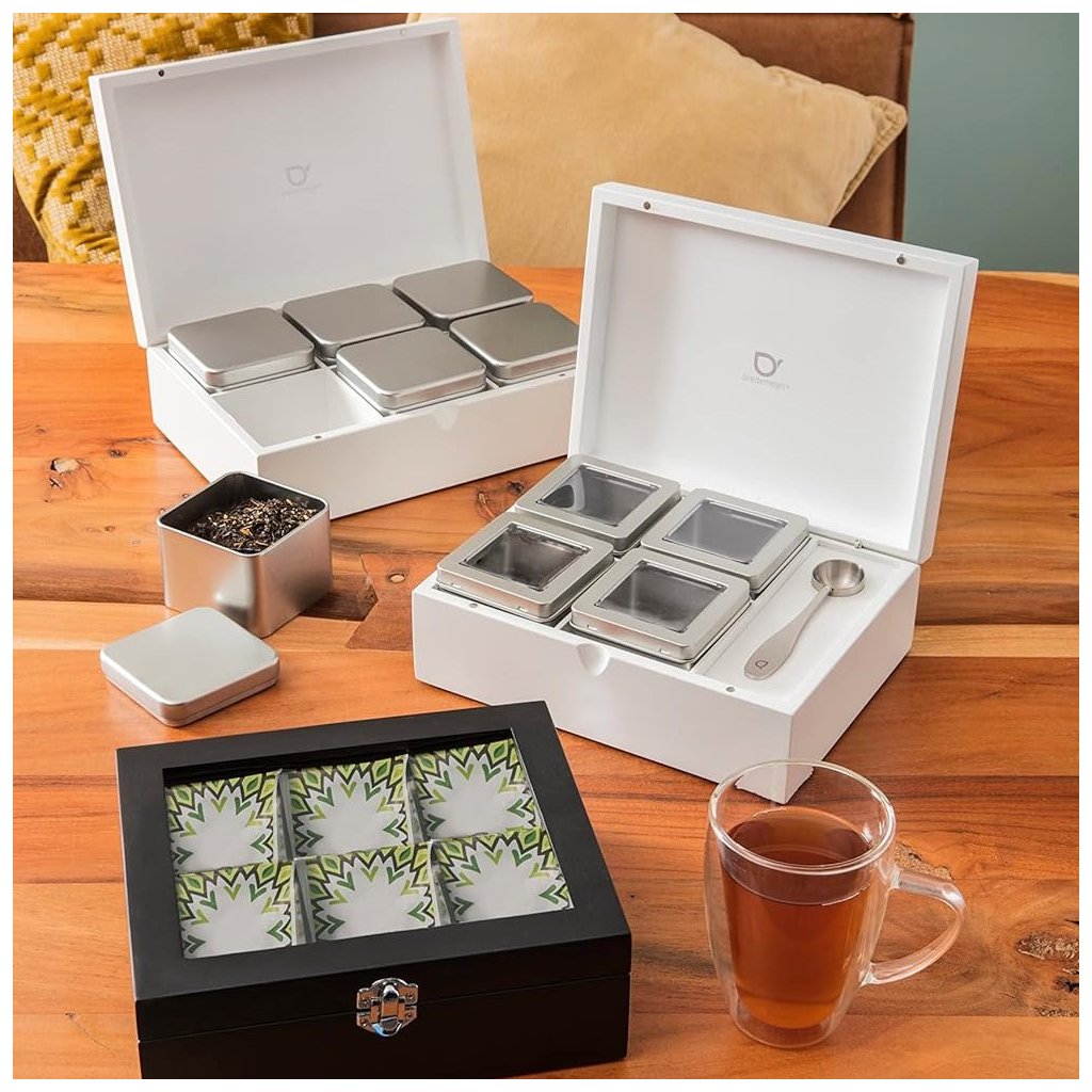 - bambusowe pudełko do przechowywania sypanej herbaty