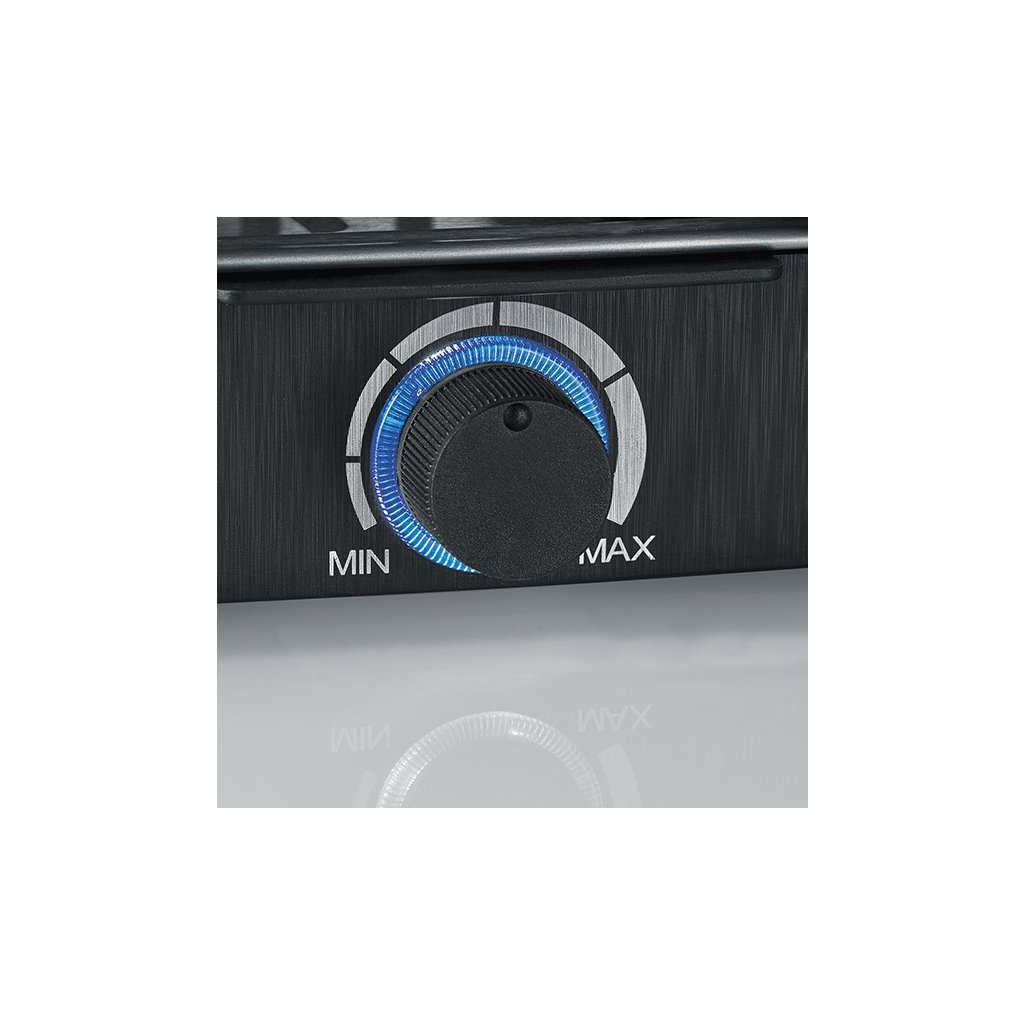 Grill Severin RG 2372 posiada powierzchnię grillową wykonaną z kamienia lawowego. Kamienie lawowe pozwalają na grillowanie bez tłuszczu, dzięki czemu przygotowywane potrawy są znacznie zdrowsze. Powierzchnia do grillowania ma wymiary 46 x 23 cm. Dolna przestrzeń pod powierzchnią grillową przystosowana jest do 8 małych patelni. Są one wykonane z nieprzywierającej powierzchni. Z łatwością upieczesz ziemniaki, stopisz ser lub usmażysz warzywa.
