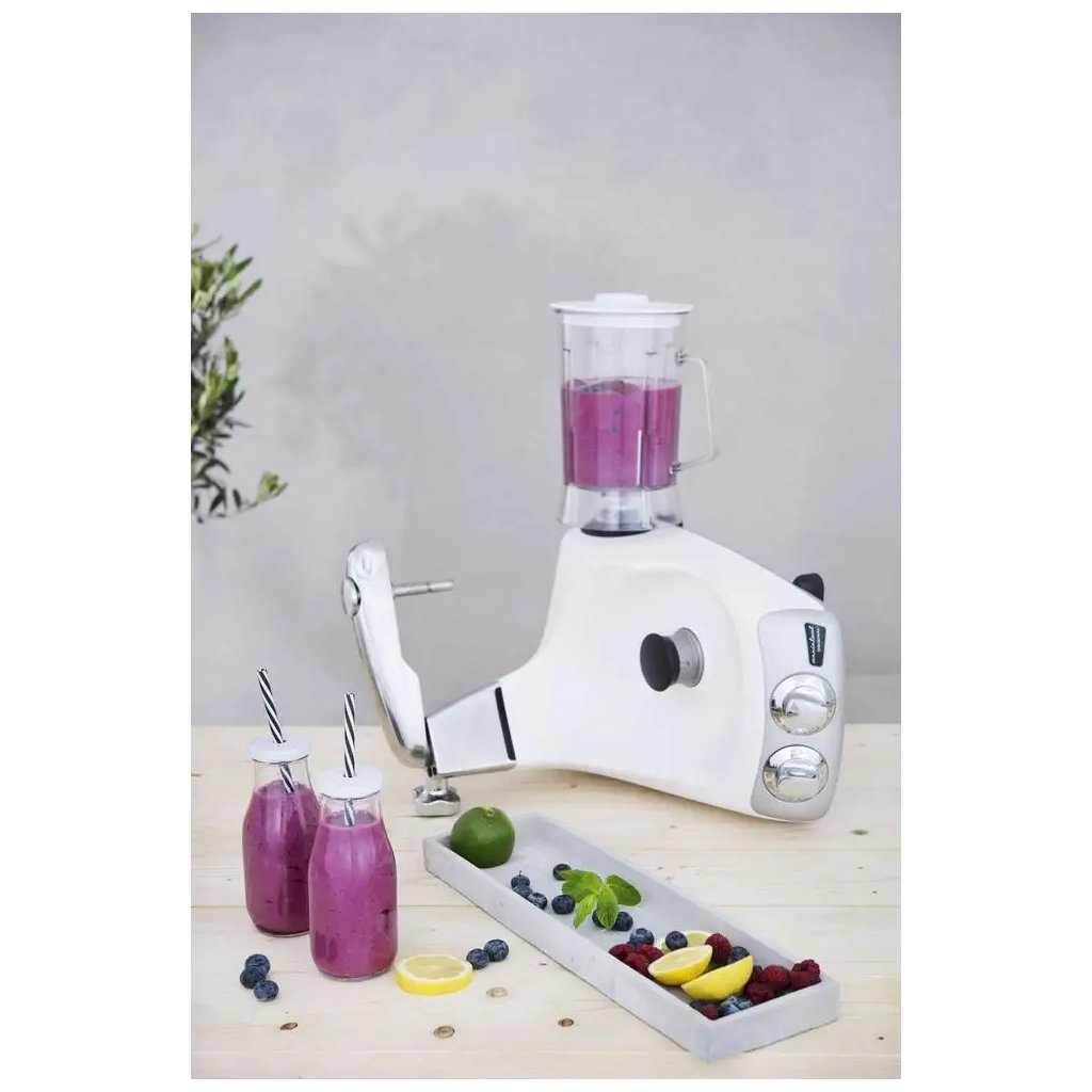 - akcesoria opcjonalne: przystawka do makaronu, cytrusiarka, blender, maszynka do mięsa, sokowirówka, tarka do warzyw, tarcze do makaronu, młynek do ziarna, płatkarka, przystawka do ciastek