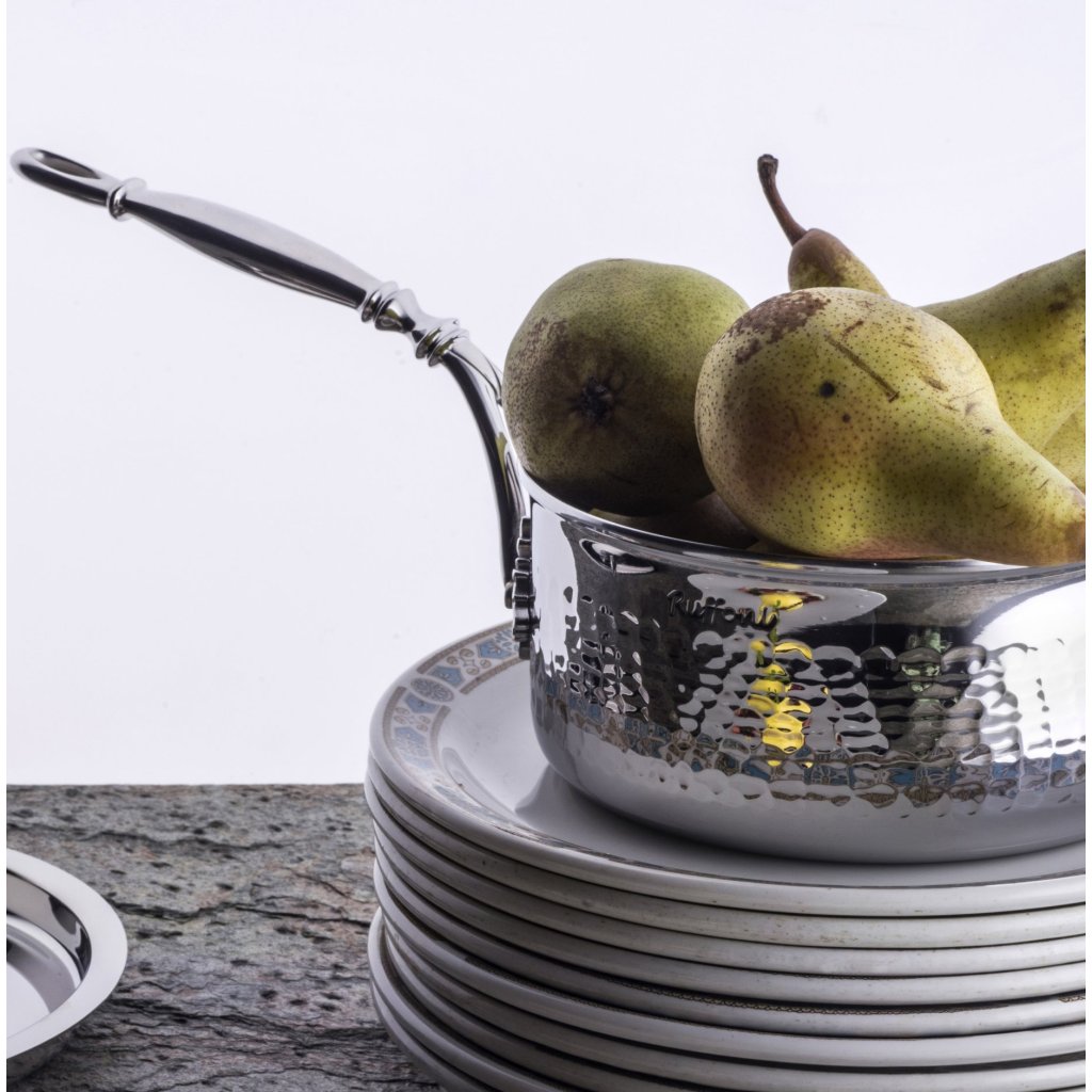 - luksusowy, kuty rondel ze stali nierdzewnej z pokrywką dla najbardziej wymagających kucharzy profesjonalnych i amatorów