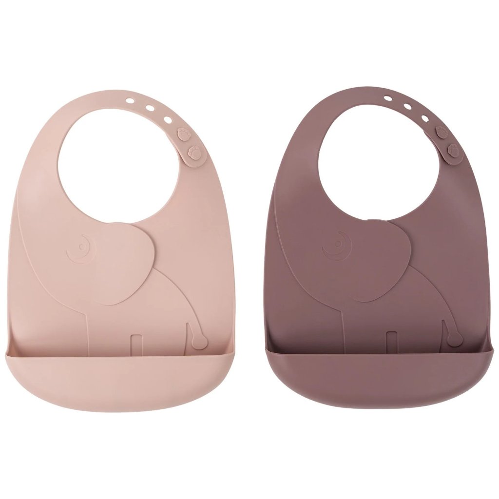 Śliniak dla dzieci PEEKABOO ELPHEE , zestaw 2 szt., różowy, silikonowy, Done by Deer