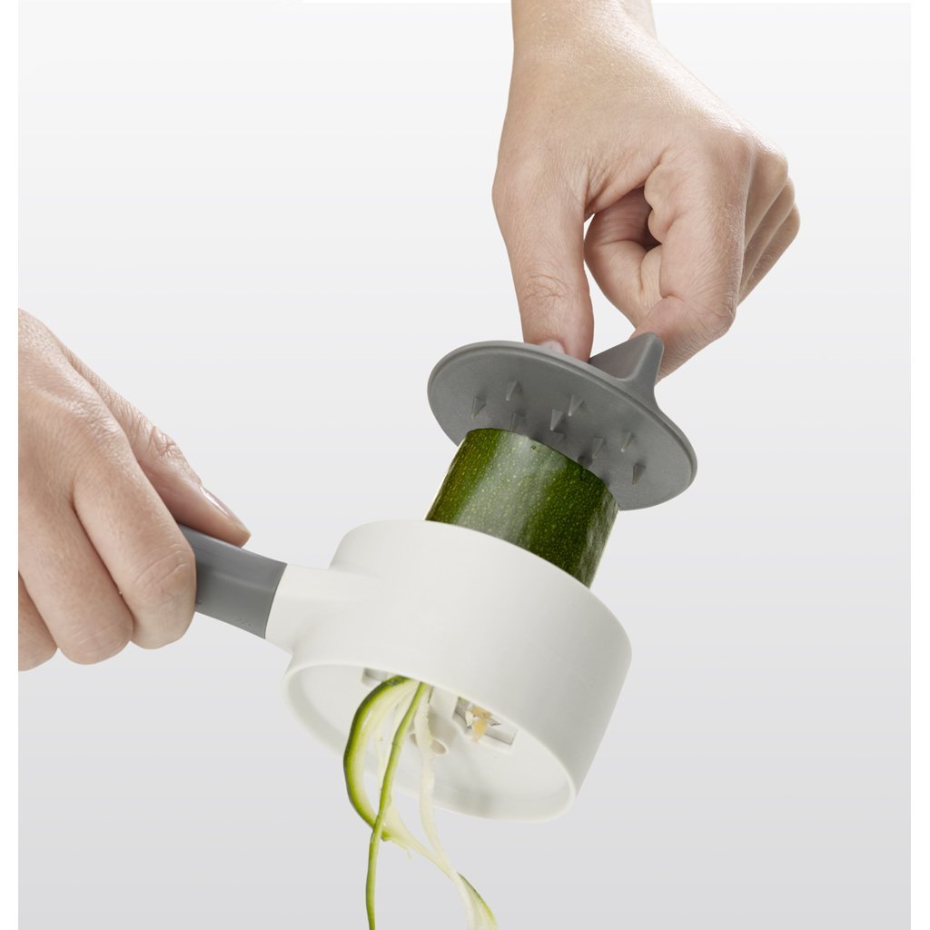 Użyj spiralizera JOSEPH JOSEPH Duo Compact do szybkiego przygotowania niewielkich ilości warzyw. Długi uchwyt zapewnia wygodne trzymanie. Ostrze ze stali nierdzewnej ustawione dla optymalnej grubości makaronu.