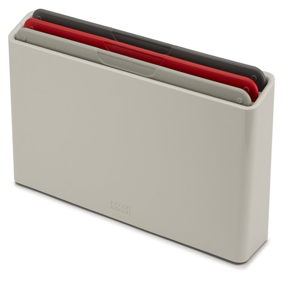 Atutem desek do krojenia z tworzywa sztucznego jest z pewnością ich łatwe czyszczenie, higiena, a przede wszystkim fakt, że są delikatne dla naszych noży. Celem projektantów Joseph Joseph tym razem było sprawienie, by deski do krojenia były zawsze pod ręką, stworzenie unikalnych desek do krojenia, które spełnią swoje zadanie w 100%, a także rozwiązanie ich łatwego przechowywania. Stojak z deskami do krojenia Duo to zestaw najczęściej wykorzystywany do pracy w kuchni.