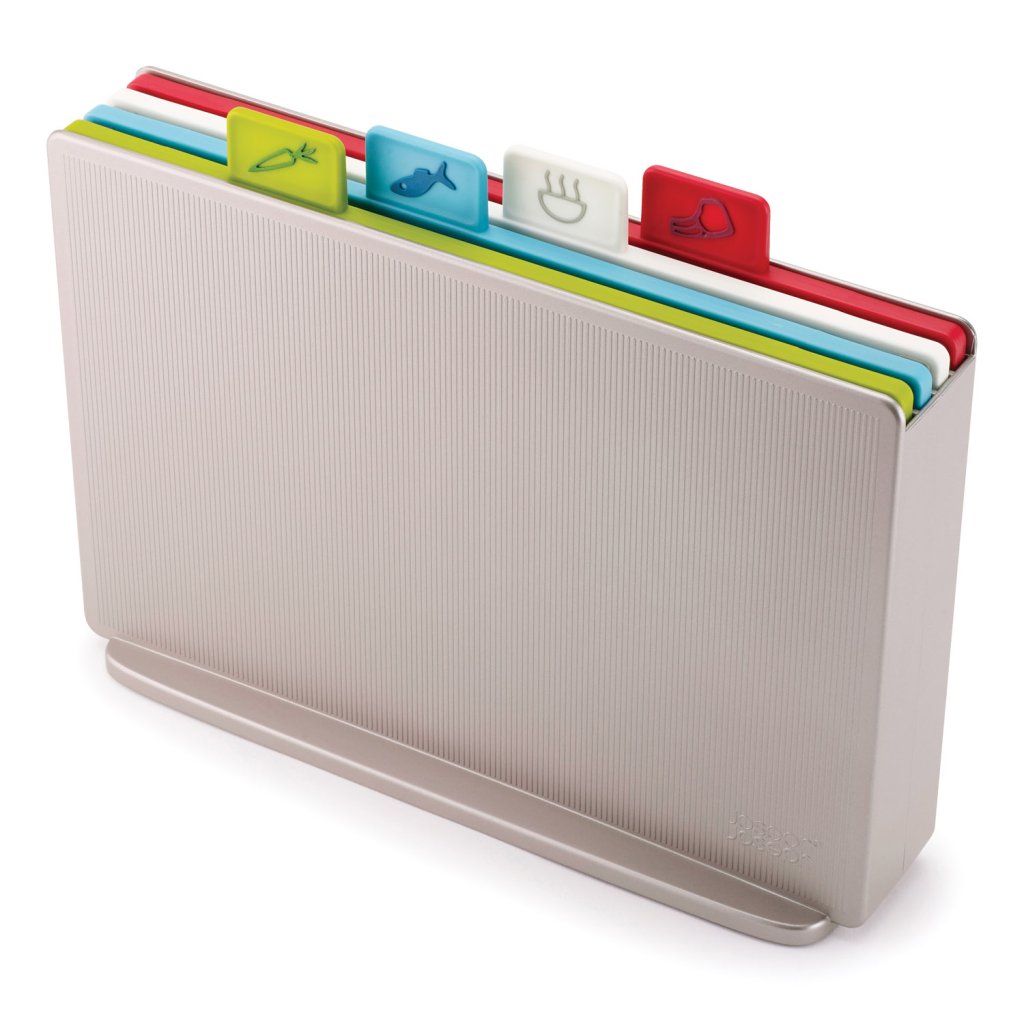Deski do krojenia w zestawie INDEX 30 x 20 cm, ze stojakiem, srebrny, Joseph Joseph