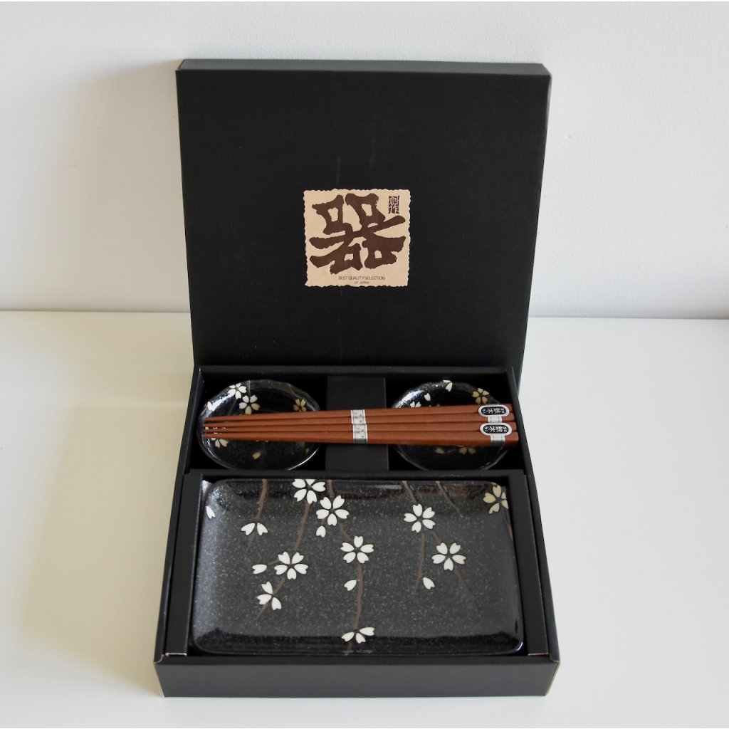 Zestaw do sushi z pałeczkami do sushi BLACK WITH WHITE PETALS, 6 szt., MIJ