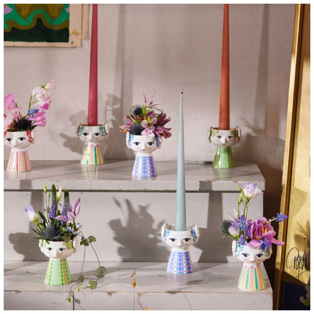 Świecznik EVA 9 cm, jasnoniebieski, ceramiczny, Bjørn Wiinblad