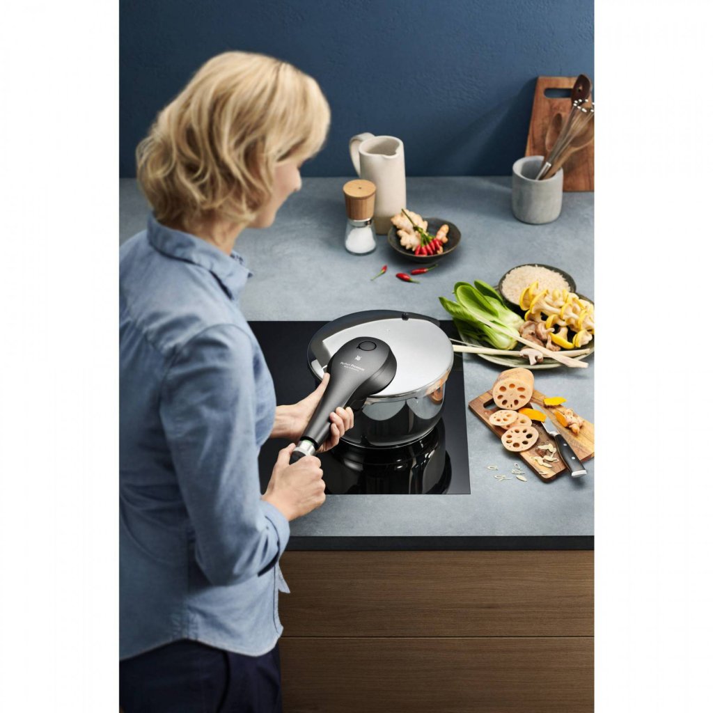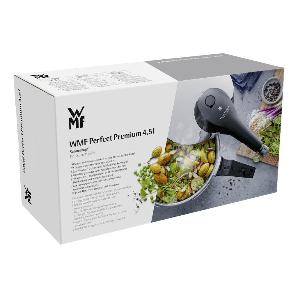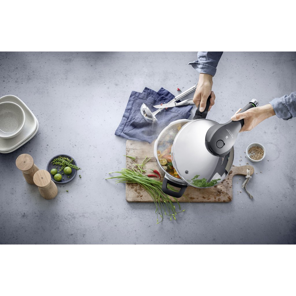 Szybkowary Perfect Premium wykonane są z polerowanej stali szlachetnej 18/10 Cromargan® . Wyróżniającą cechą szybkowaru jest zdejmowany solidny uchwyt z wbudowanym wielofunkcyjnym kontrolerem all-in-one. Obróć go, aby łatwo kontrolować wszystkie funkcje: otwieranie i zamykanie pokrywy, uwalnianie pary i regulację temperatury. Zaawansowany system autoMatycznego odsysania pary zapewnia absolutne bezpieczeństwo podczas obsługi.