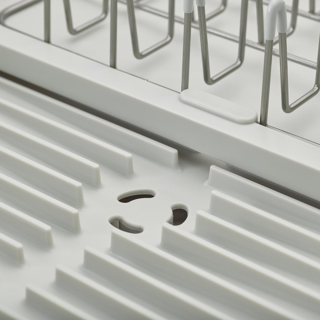 - Rozkładana konstrukcja pozwala na powiększenie powierzchni ociekowej nawet dwukrotnie, dzięki czemu pomieści więcej talerzy, szklanek lub misek po większym myciu.