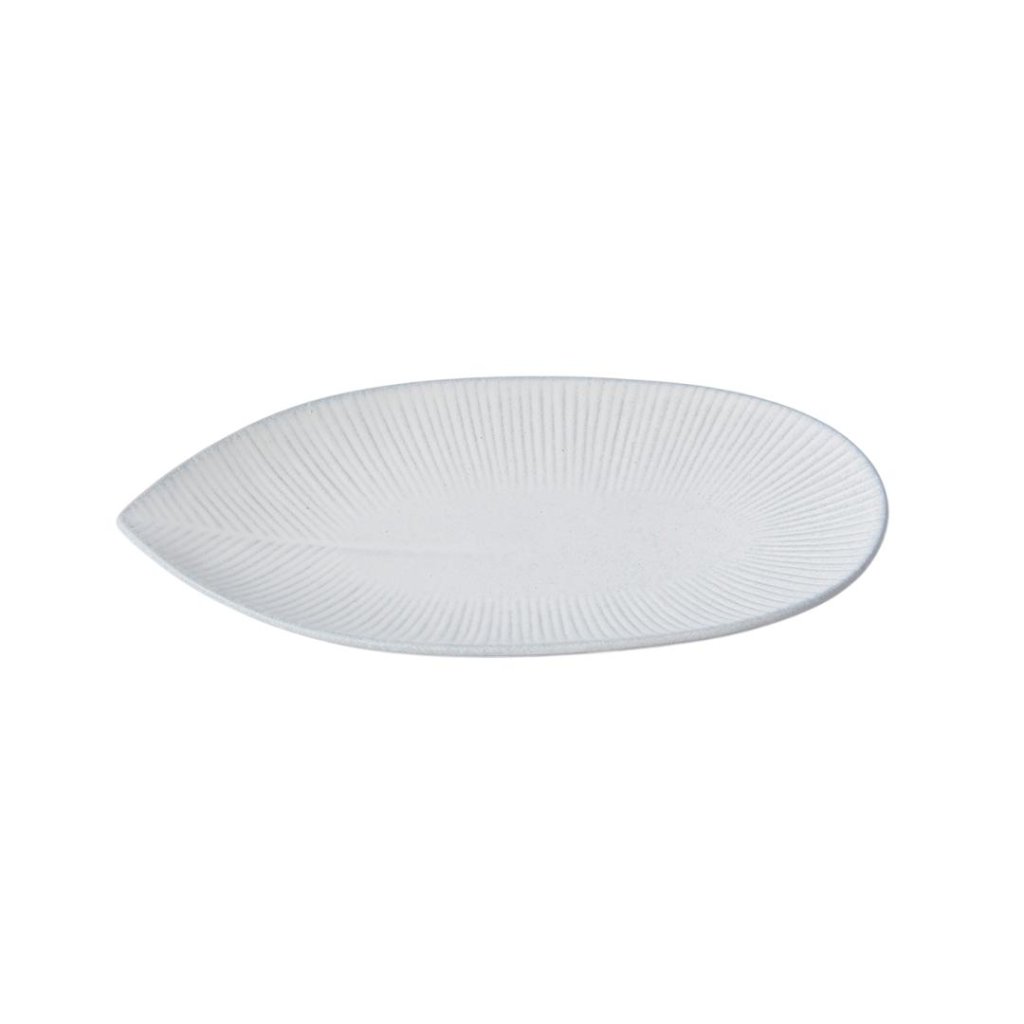 - Nieregularny talerz SNOW LEAF o długości 21,5 cm służy do eleganckiego serwowania mniejszych dań, a dzięki swojemu kształtowi liścia stanowi subtelny akcent dekoracyjny na stole.