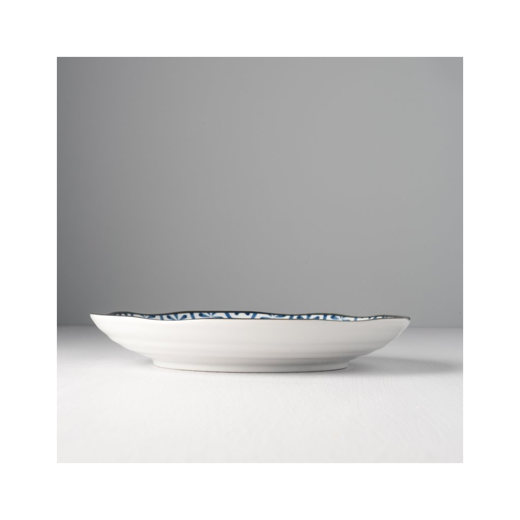 Płytki talerz z kolekcji Indigo Ikat marki MIJ wykonany jest ręcznie z trwałej, naturalnej ceramiki, która nie zawiera szkodliwych zanieczyszczeń ani metali ciężkich. Wykonywany jest przez japońskich mistrzów, których tradycja sięga XII wieku. Szkliwa są wysokiej jakości, nie łuszczą się i nie zawierają żadnych szkodliwych substancji.