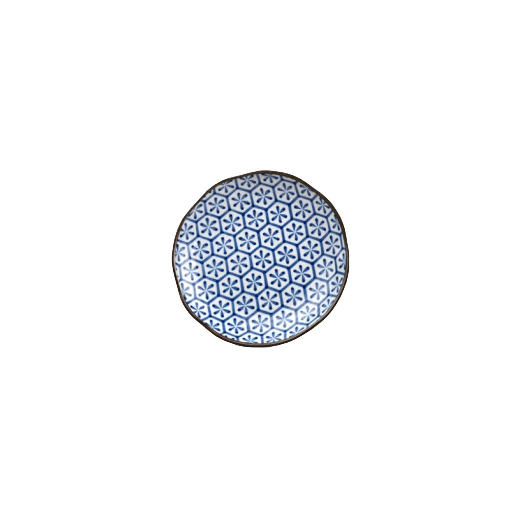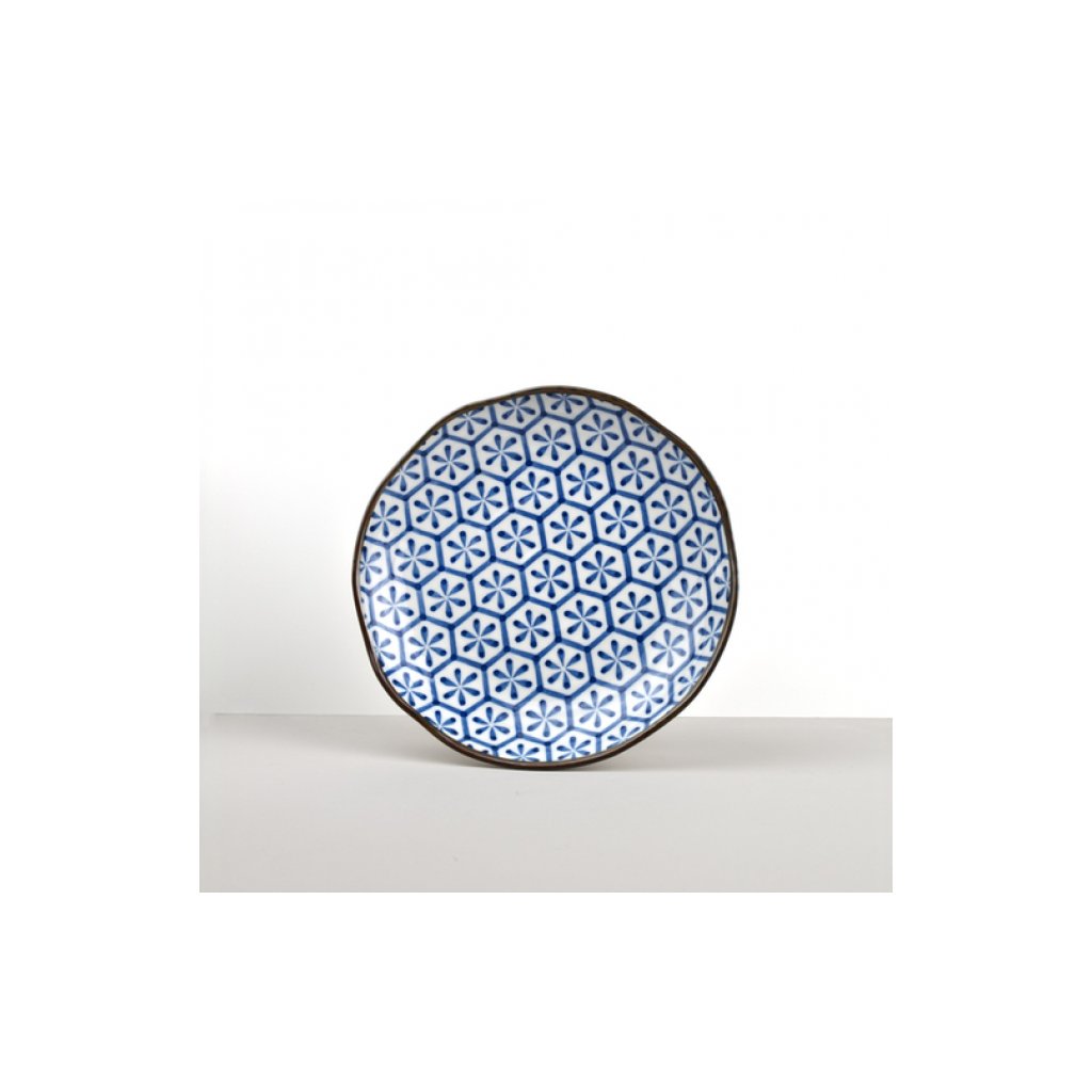 Talerz deserowy HEXAGON FLOWER INDIGO IKAT 23 cm, MIJ