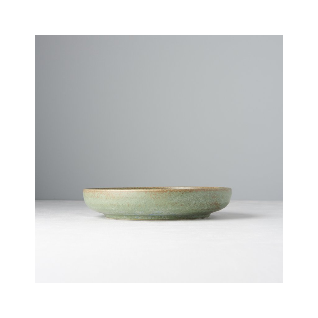Talerz płytki z wysokim brzegiem z kolekcji Fade od producenta Made in Japan jest wykonany ręcznie z wysokiej jakości naturalnej ceramikiktóra nie zawiera szkodliwych substancji. Każda sztuka jest oryginalna.. Ceramika jest importowana bezpośrednio z Japonii.. Zielony talerz o średnicy 20 cm nadaje się do mycia w zmywarce i używania w kuchence mikrofalowej.