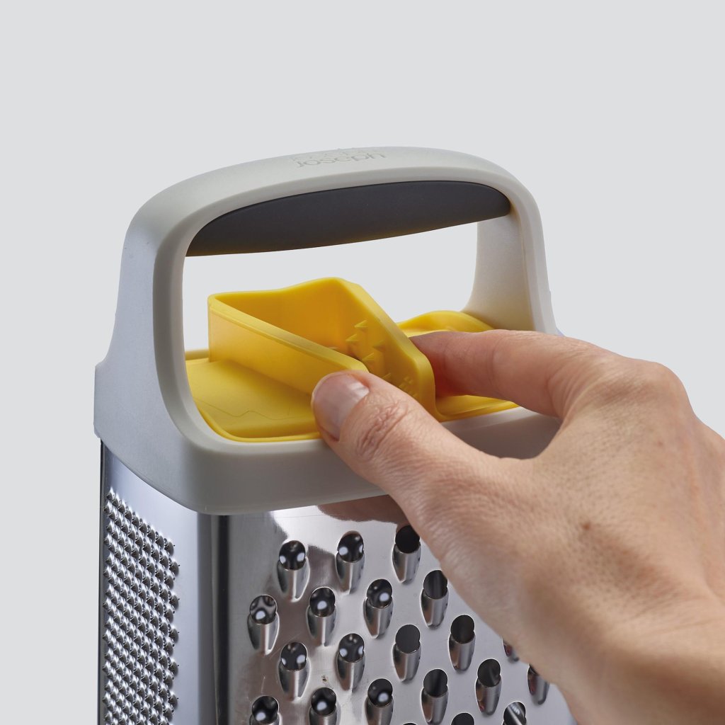 - Joseph Joseph MULTI-GRIP to praktyczny tarka czterostronna do codziennego gotowania, który łączy w sobie bezpieczeństwo, precyzję i przemyślany design.