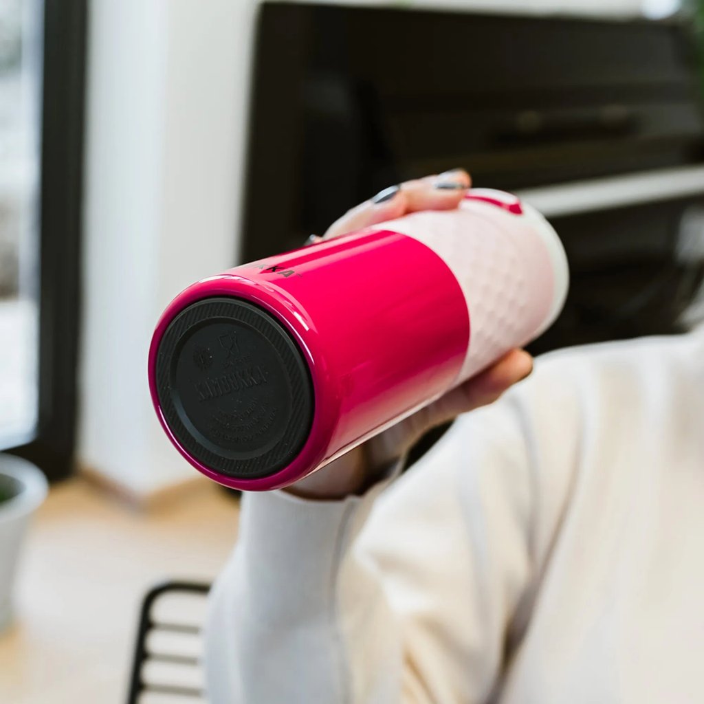 - pojemność 500 ml jest idealna na dłuższe wycieczki, dni pracy lub podróże - mieści się w większości uchwytów na kubki
