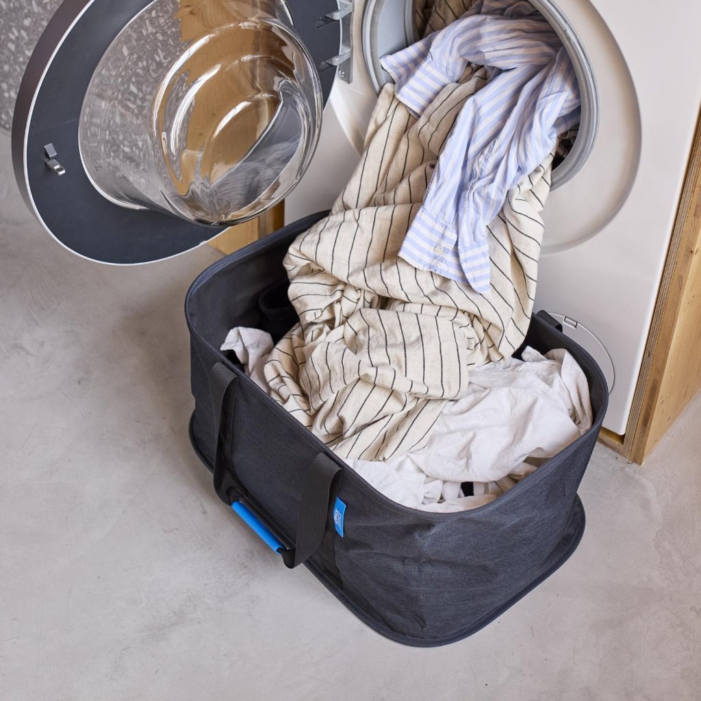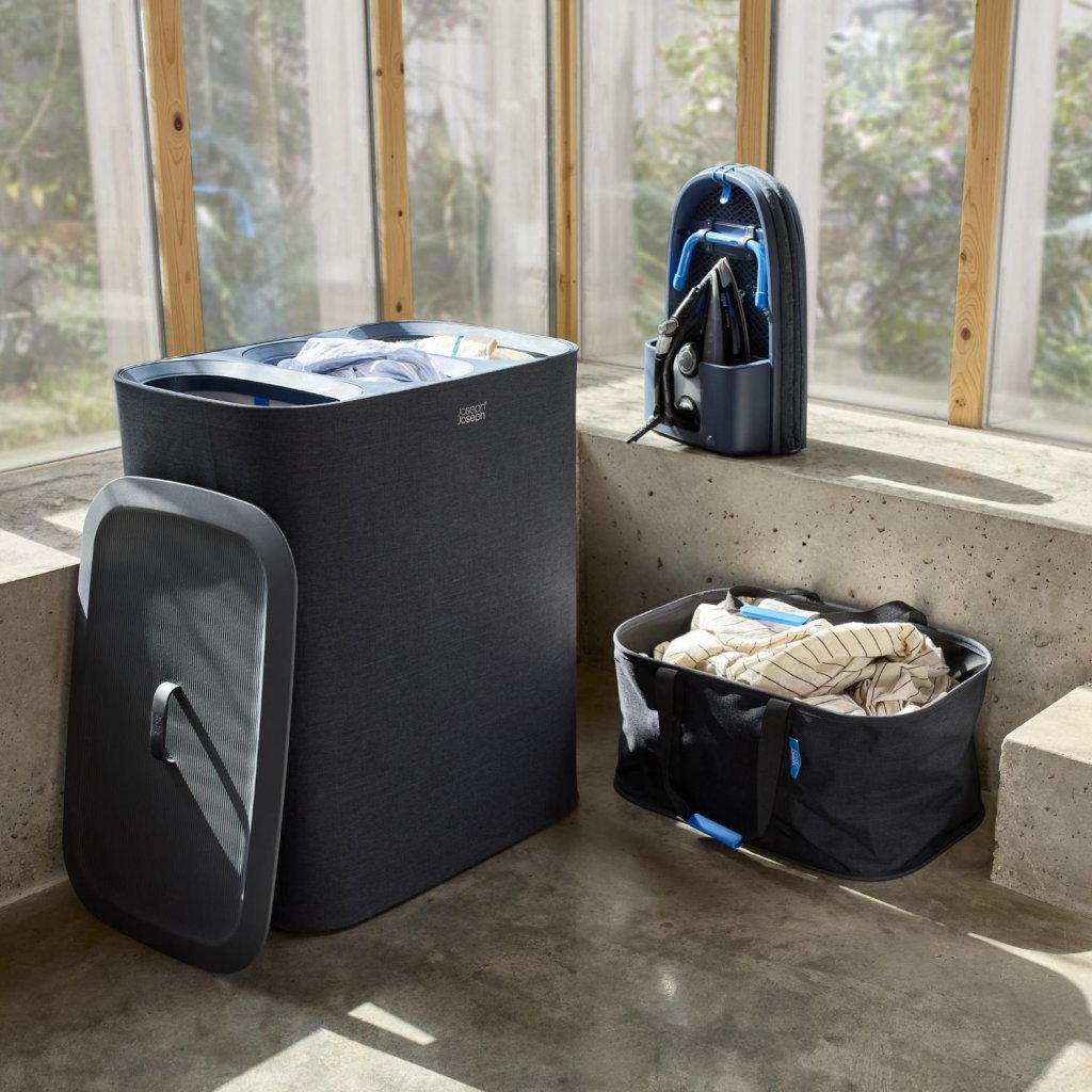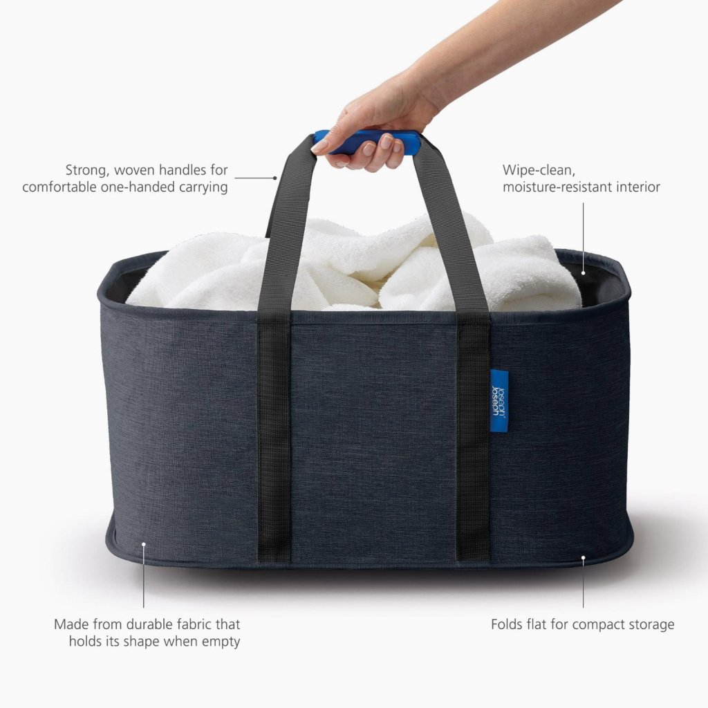 - Torba na pranie Joseph Joseph HOLD-ALL o pojemności 35 litrów oferuje eleganckie i praktyczne rozwiązanie do codziennego przenoszenia prania między sypialnią, łazienką a pralką.