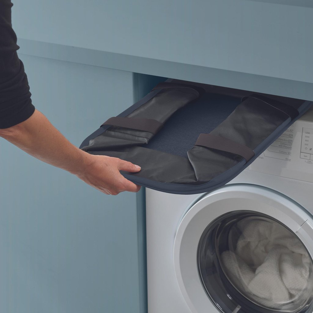 - Dzięki możliwości płaskiego złożenia, łatwo wsuniesz ją w wąską przestrzeń obok pralki lub schowasz do szafy, gdy jej aktualnie nie używasz.