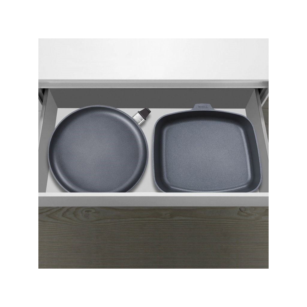 Dzięki specjalnemu procesowi produkcji, wysokiej jakości nieprzywierająca powierzchnia jest odporna na mycie w zmywarce, a nawet na używanie metalowych narzędzi kuchennych (aby przedłużyć żywotność naczyń, zalecamy jednak używanie delikatniejszych drewnianych lub silikonowych przyborów kuchennych). Specjalnie utwardzona, nieprzywierająca powierzchnia WOLL sprawdza się w zdrowym gotowaniu, używając małej ilości tłuszczu lub nie używając go wcale. Jest bezpieczny i nie zawiera PFOA. Powstałe w ten sposób potrawy są tak bogate w witaminy. Dzięki odporności na temperaturę do 250 °C nadaje się nie tylko do delikatnych potraw, ale także do smażenia w wysokich temperaturach. Naczynie Titanium Nowo cookware również wytrzymuje szoki termiczne, może być nawet ogrzewane bez użycia tłuszczu. Dzięki doskonałym właściwościom nieprzywierającym, naczynie jest bardzo łatwe do czyszczenia.