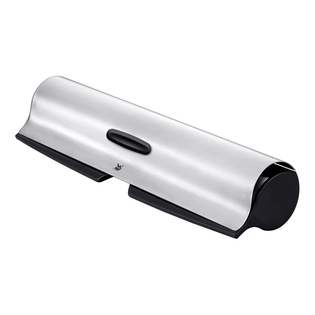 Uchwyt na folię WMF to elegancki i praktyczny pomocnik kuchenny. Wykonany jest z matowej stali nierdzewnej i wysokiej jakości tworzywa sztucznego. Dzięki niemu można łatwo zwijać i odrywać folię spożywczą lub aluminiową. Nadaje się do rolek o maksymalnej szerokości 31 cm. Włożyć folię do uchwytu, delikatnie rozwinąć ciągnąć za koniec i oderwać za pomocą ostrej krawędzi Uchwyt na folię nie zajmuje niepotrzebnie dodatkowego miejsca. Gładka powierzchnia sprawia, że jest on również łatwy do czyszczenia.