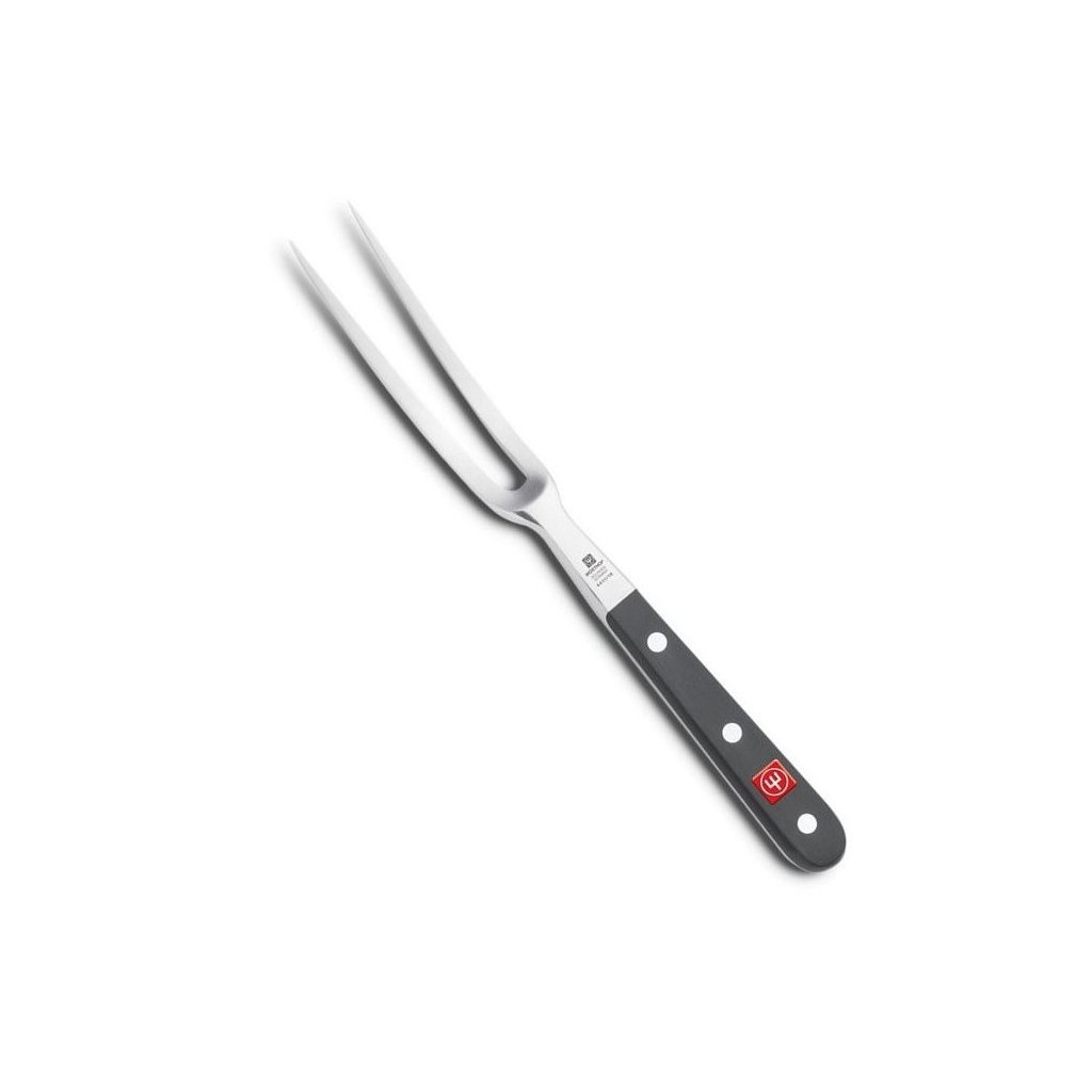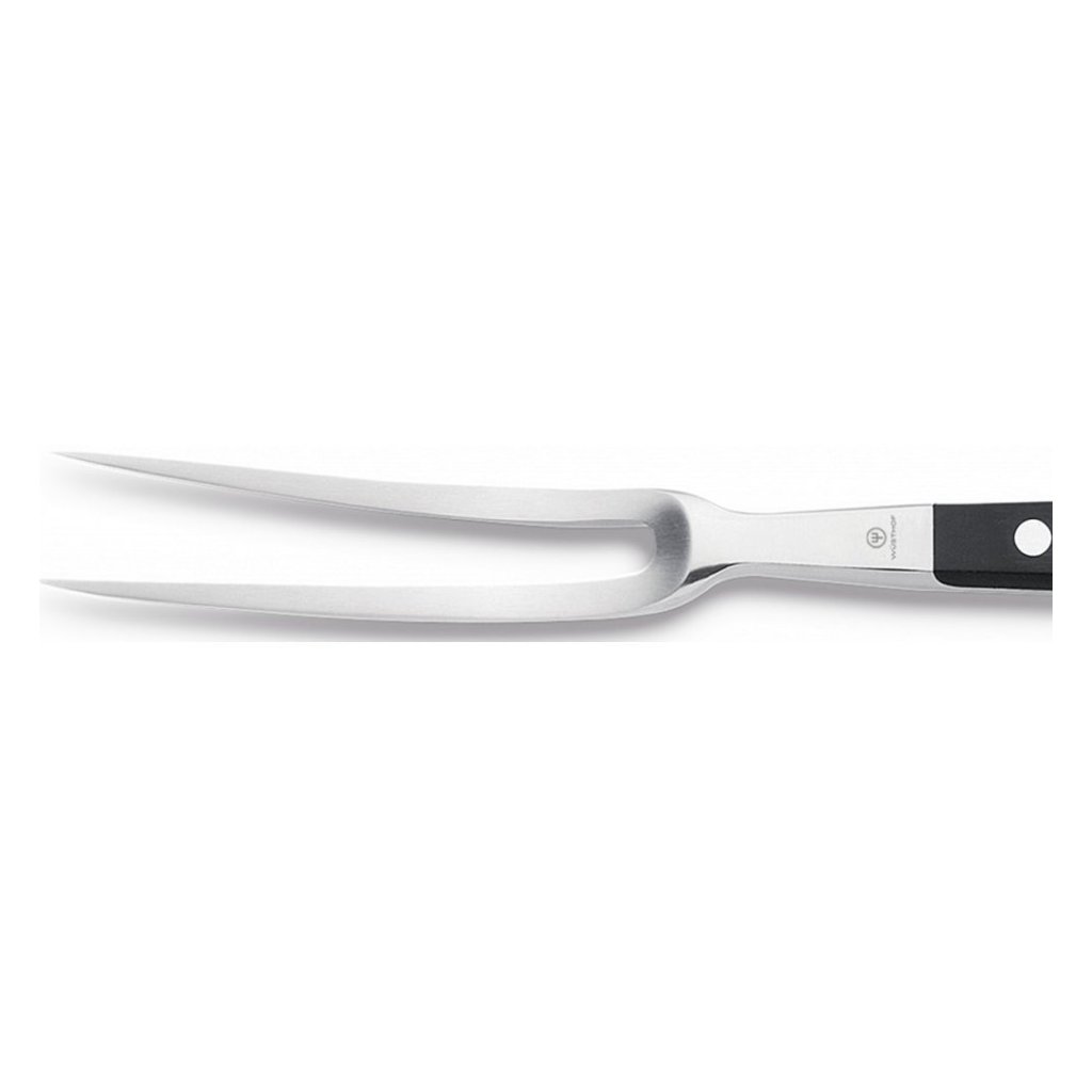 Widelec ten może być używany jako widelec pomocniczy do krojenia lub serwowania. Oferuje dobre przytrzymywanie praktycznie każdej potrawy. Za pomocą szpikulców można sprawdzić, czy jedzenie jest gotowe. Widelec wyposażony jest w ergonomicznie ukształtowaną rękojeść z trzema nitami. Ze względów higienicznych nie ma szczeliny między uchwytem a stalą;