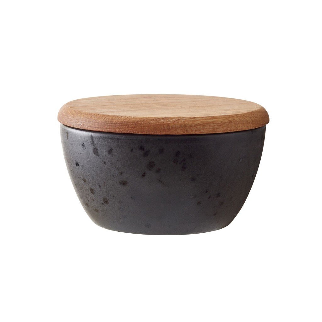 Dębowa pokrywka do miski o średnicy 14 cm firmy Bitz pasuje idealnie do kamionkowych misek i słoików Bitz o tej samej wielkości. Miski mogą być również wykorzystywane do przechowywania żywności.