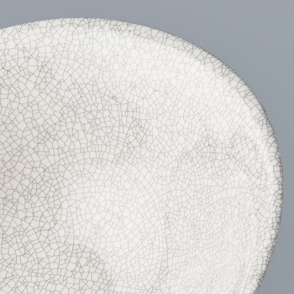 Misa ma silnie spękaną powierzchnię w błyszczącym szkliwie i nieregularną krawędź, co sprawia wrażenie, że została sklejona.