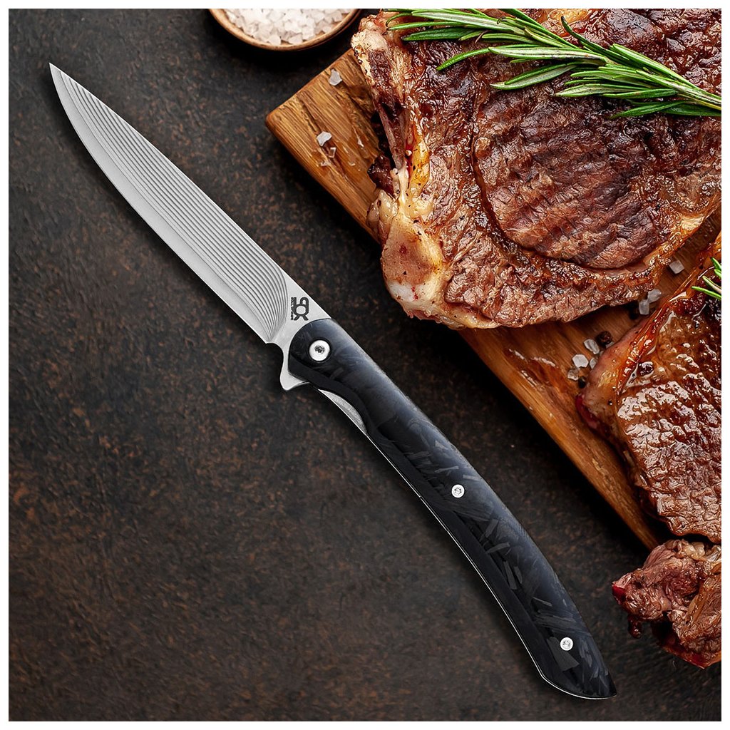 Nóż do steków SOK SHARK VG-10 DAMASCUS CARBON 10 cm, Dellinger