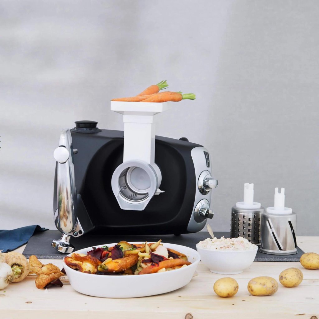Zestaw Deluxe zawiera trzy najpopularniejsze akcesoria do robota kuchennego Ankarsrum , co czyni go wielofunkcyjnym pomocnikiem w Twojej kuchni.