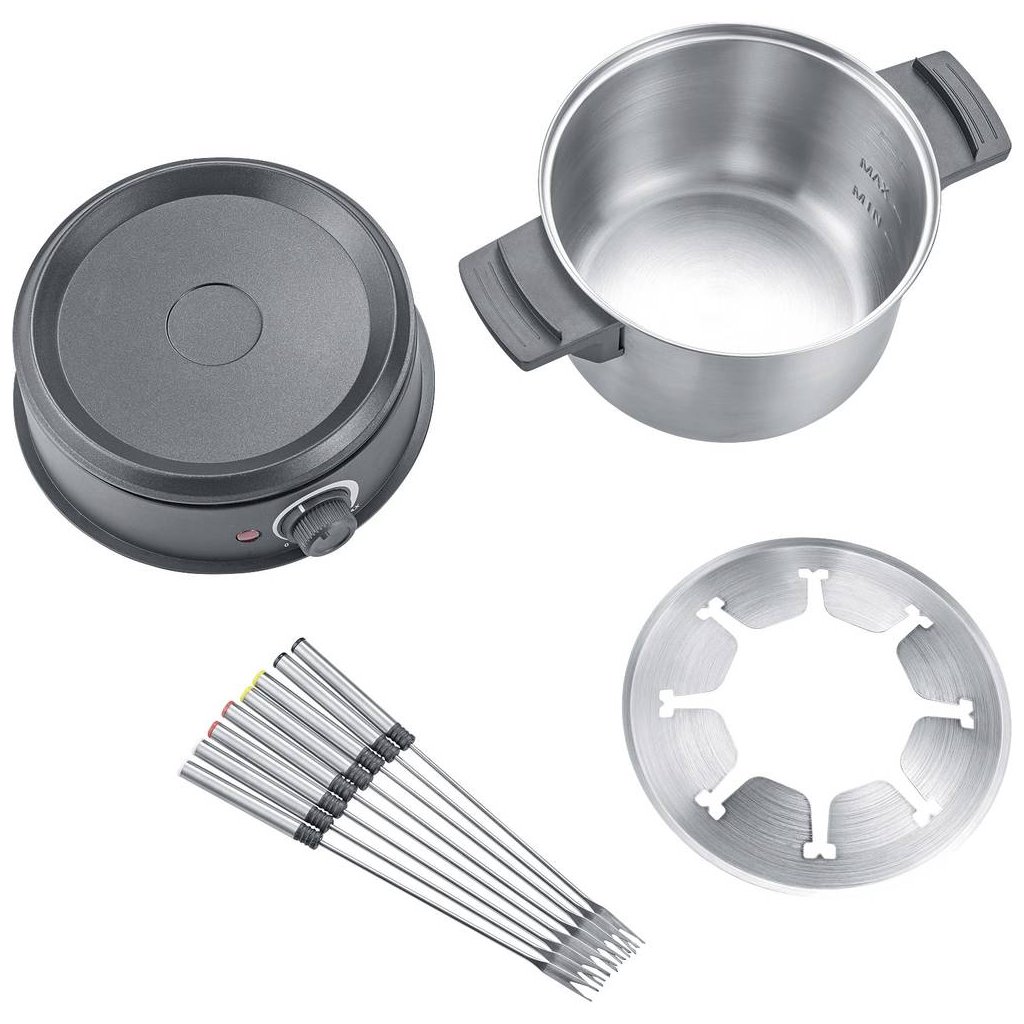 - płynnie regulowany termostat umożliwia precyzyjną kontrolę temperatury dla różnych rodzajów fondue