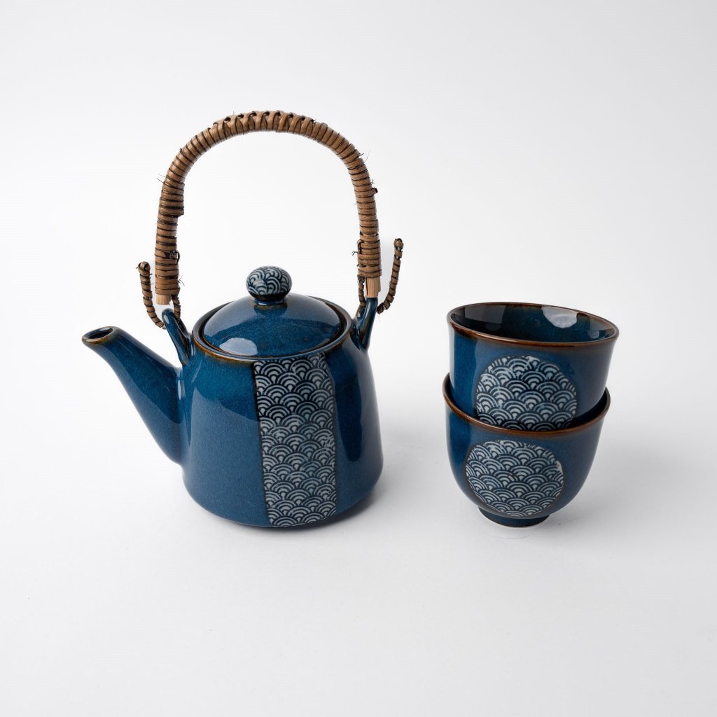 - Japoński zestaw do herbaty z motywem fal morskich