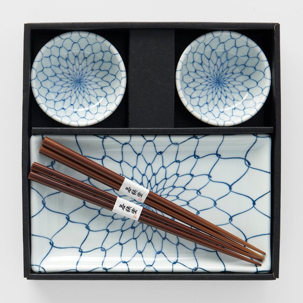 Zestaw do sushi WHITE WITH BLUE NET, zestaw 6 sztuk, niebieski, ceramiczny, MIJ