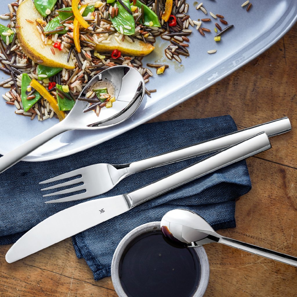 Sztućce wykonane są z wysokiej jakości stali nierdzewnej Cromargan®, która zawiera 72% stali, 18% chromu i 10% niklu. Jest to materiał trwały, niekorodujący, odporny na działanie kwasów spożywczych. Cromargan® pięknie błyszczy i jest łatwy do czyszczenia. Sztućce nadają się do mycia w zmywarce.