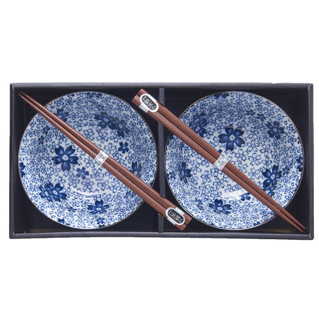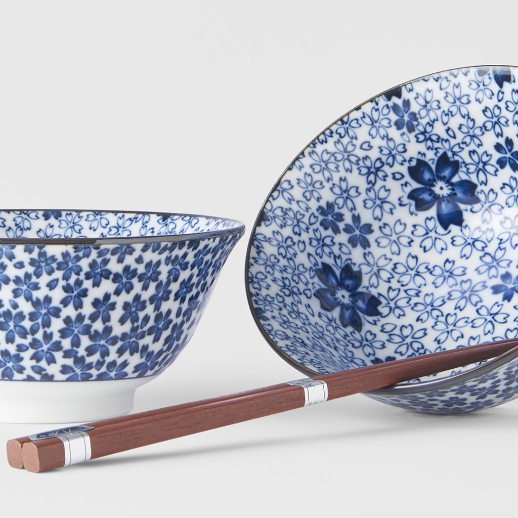Miska obiadowa WHITE WITH BLUE BLOSSOM, zestaw 2 szt. z pałeczkami do sushi, 400 ml, MIJ