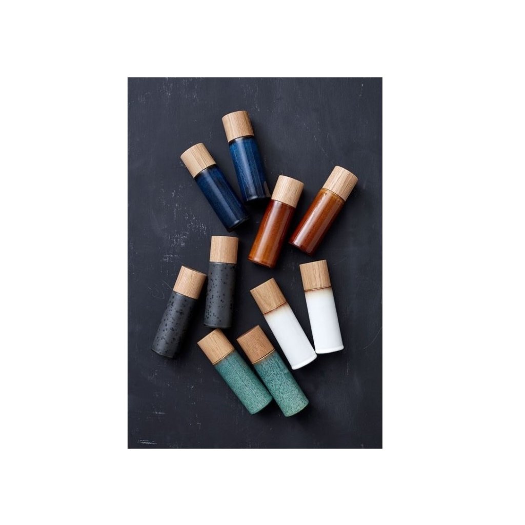 Zestaw 2 pięknych młynków do soli i pieprzu firmy Bitz będzie wspaniałym kolorowym dodatkiem do Twojej kuchni lub jadalni. Każdy młynek wykonany jest z grubej kamionki o glazurowanej powierzchni, co nadaje mu wyjątkowy i niepowtarzalny wygląd. Górna część wykonana jest z solidnego drewna, z białym/czarnym kołem na wierzchu, dzięki czemu można odróżnić młynki od siebie. Mechanizm młynka jest ceramiczny, co ułatwia mielenie soli i pieprzu.