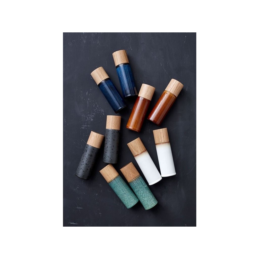Zestaw 2 pięknych młynków do soli i pieprzu firmy Bitz będzie wspaniałym kolorowym dodatkiem do Twojej kuchni lub jadalni. Każdy młynek wykonany jest z grubej kamionki o glazurowanej powierzchni, co nadaje mu wyjątkowy i niepowtarzalny wygląd. Górna część wykonana jest z solidnego drewna, z białym/czarnym kołem na wierzchu, dzięki czemu można odróżnić młynki od siebie. Mechanizm młynka jest ceramiczny, co ułatwia mielenie soli i pieprzu.